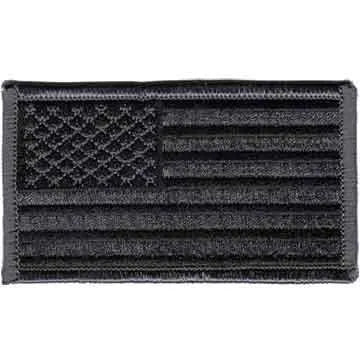 Grey camouflage American flag uniform patch measures 2.25" H x 3.5" W, and are fully embroidered. It is made to be worn on black tactical garments.