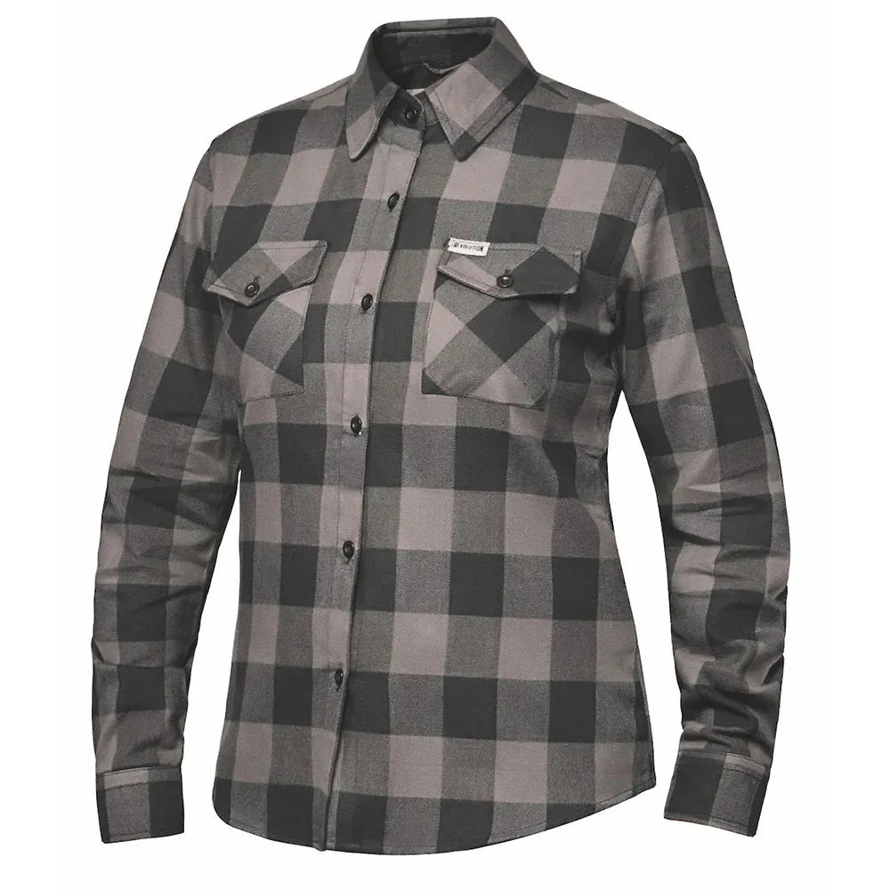 Womens Armored Flannel - Black & Gray offers a stylish and protective solution for female riders. This black and gray riding flannel is crafted from cotton and features removable armor, combining fashion-forward design with essential safety features for comfort and protection on the road. This ladies' riding flannel not only offers a unique color combination but also prioritizes safety and style, making it an excellent choice for female riders who value both fashion and functionality in their motorcycle apparel.