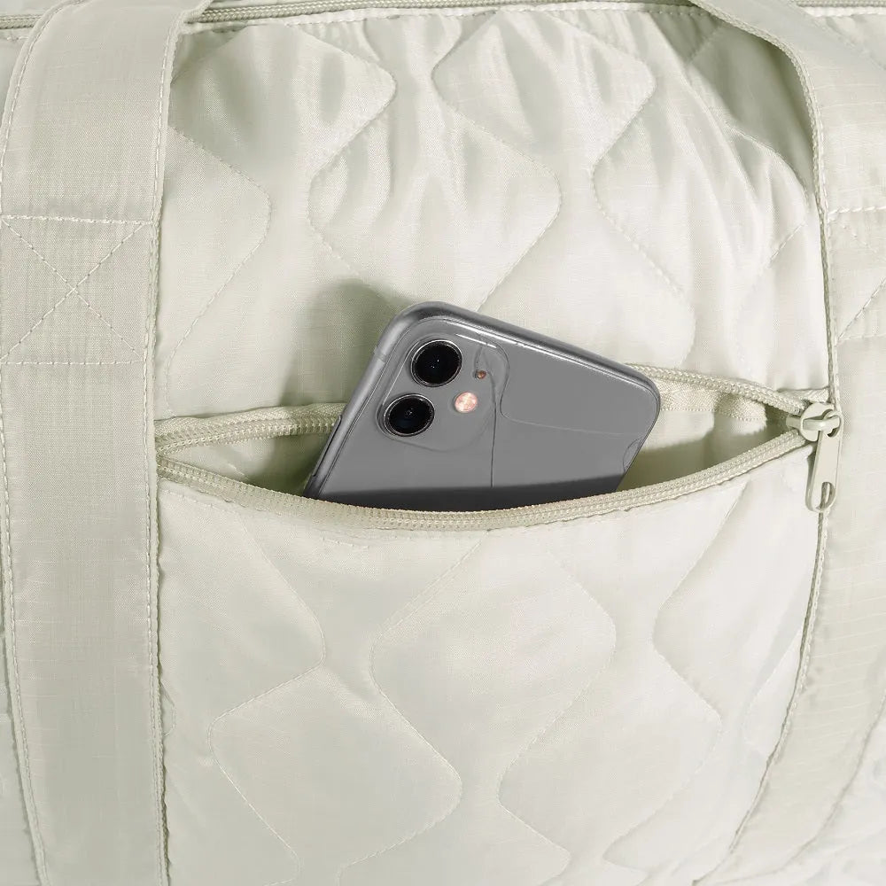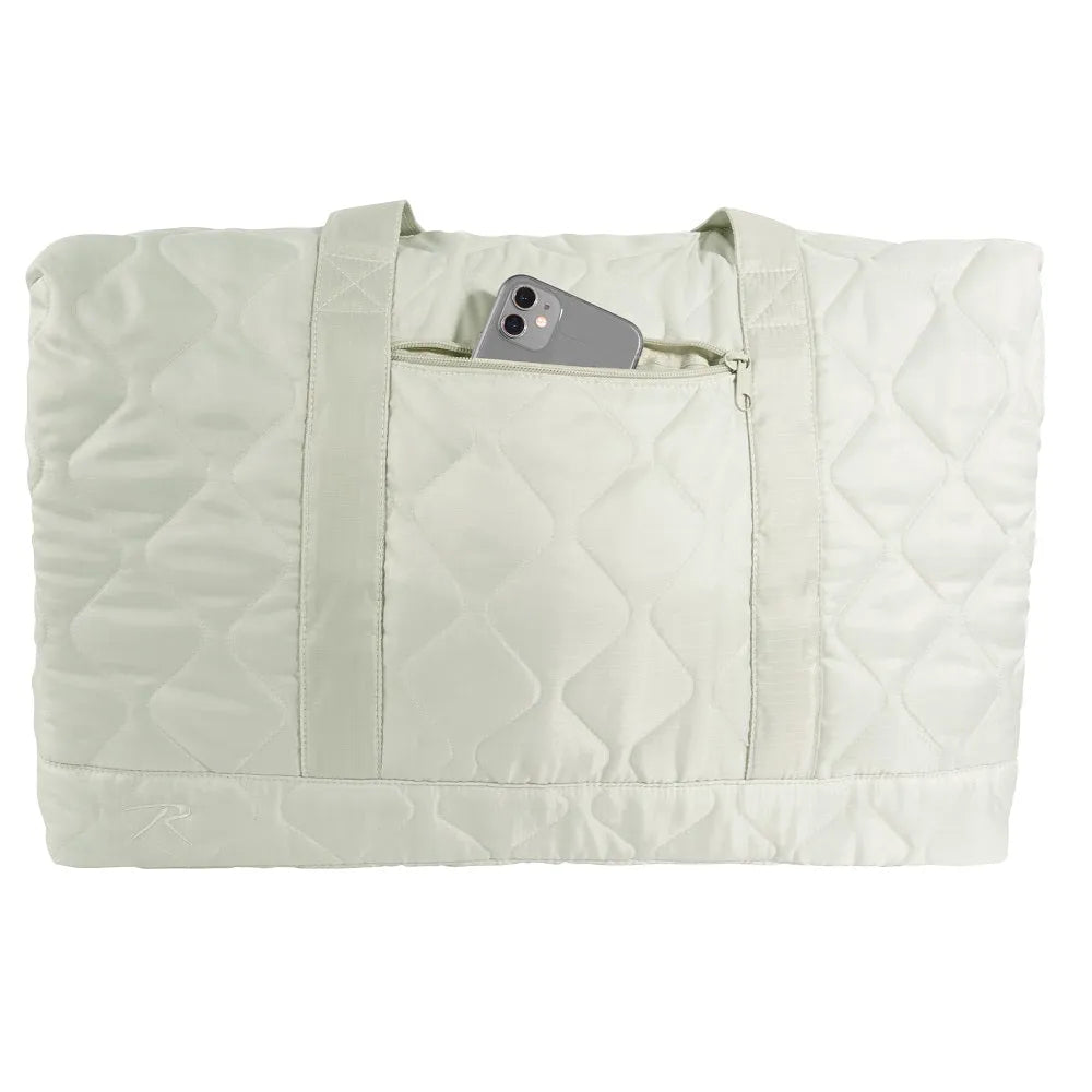 - Spacious Storage: Our Lightweight Woobie Weekender Bag provides all-in-one storage for clothes, footwear, travel essentials, and more. The main compartment features a full-length, two-way zipper closure for quick access to your gear. The quilted weekender bag has a 50L capacity and measures 20 inch x 16 inch x 9.5 inch for ample storage.