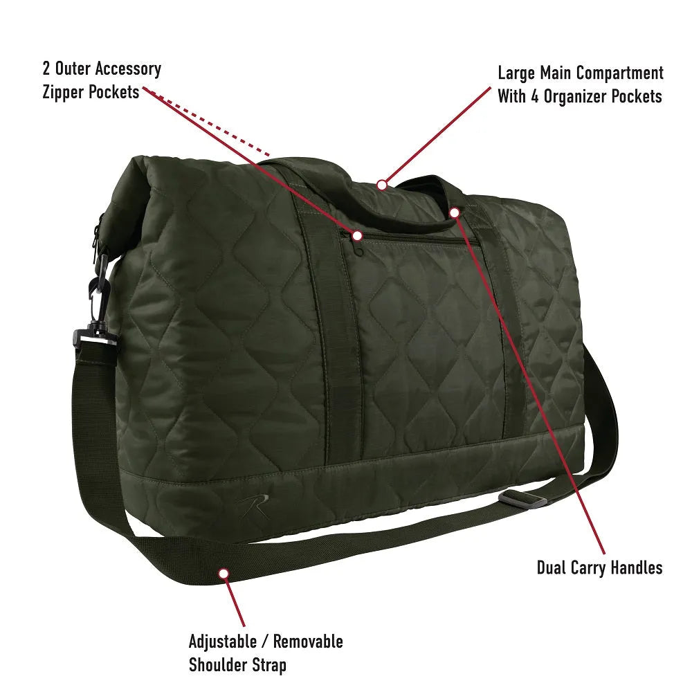 - From Tactical Roots to Everyday Utility: Inspired by the dependable versatility of the iconic poncho liner, Rothco’s Woobie collection embodies rugged style and practicality. Each item, from our durable outerwear to the premium Weekend Bag, features a distinctive quilted pattern and lightweight filling, combining unique style with everyday functionality.