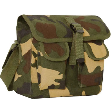This military style bag features a heavy weight cotton canvas with an adjustable shoulder strap. 2 outside hook & loop closure pockets and front flap with Metal fold over buckle closure. This plain canvas crossbody bag is a great choice for the price, and can hold cell phone, stash, etc. The military shoulder bag's dimensions are: 10" L x 8" H x 3.5" D. Imported.