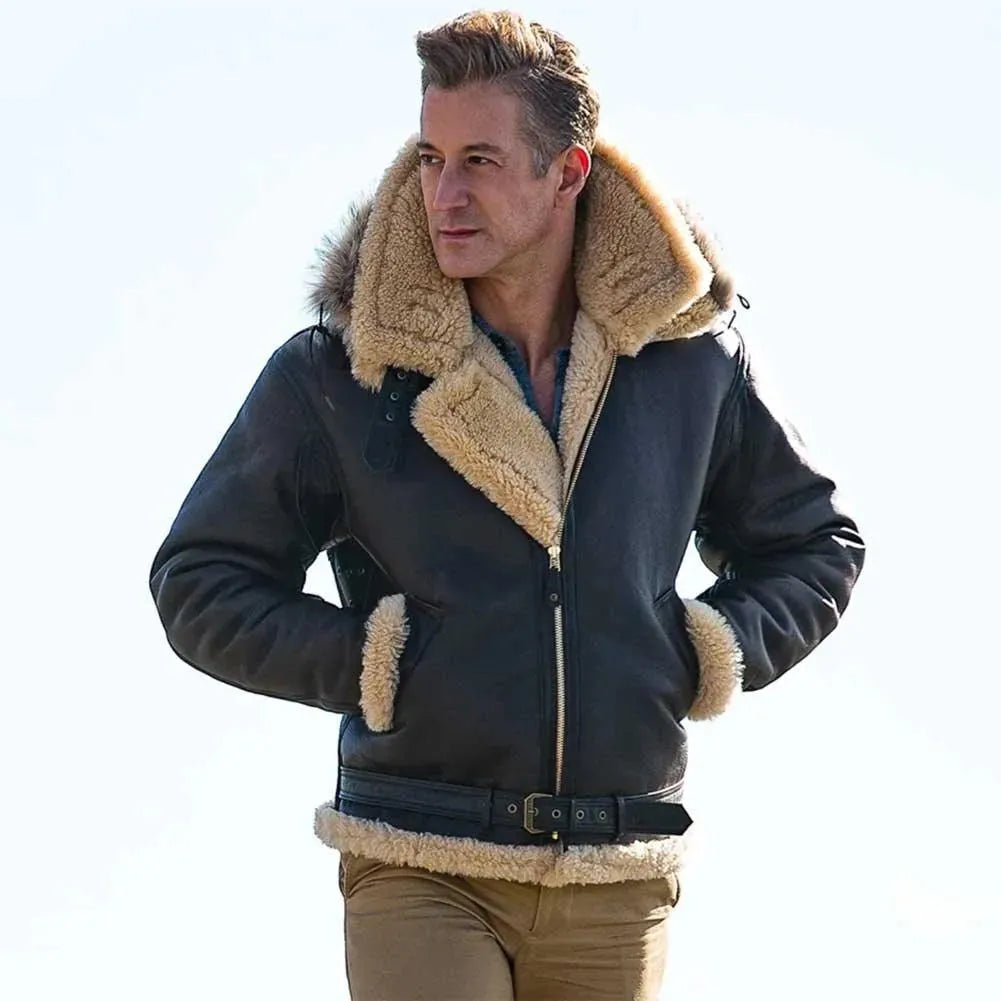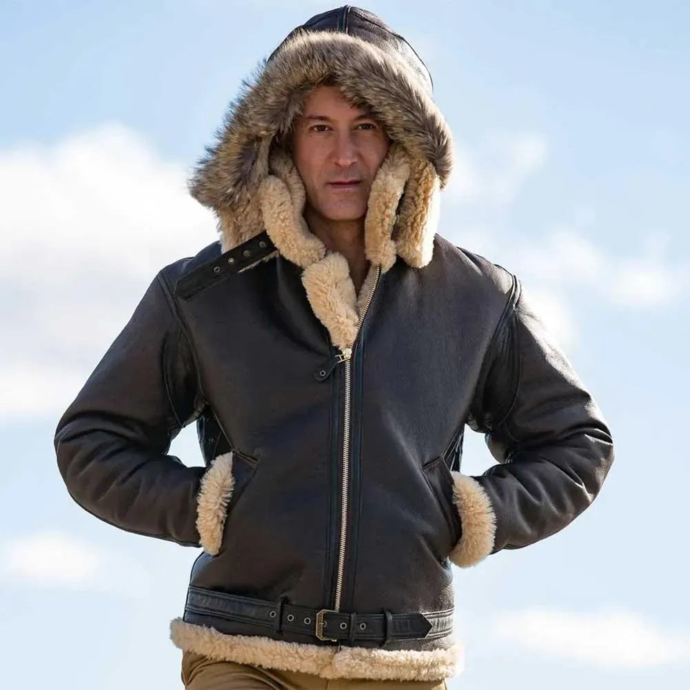 Cockpit USA Mens Dunkirk Hooded R.A.F. Sheepskin Bomber Jacket