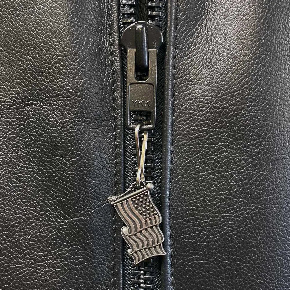 This US flag metal zipper pull from Bravo Bells is the Cadillac of the wide range of options available on the market. The Old Glory zipper pull for jackets is a detailed work of art not found in any other brand. Lead-free cast pewter design features incredible relief of each pull in a variety of designs. Each novelty zipper pull comes with a 1-inch lanyard hook and a display card. Dimensions: approx. .875" W X 1.5" H.