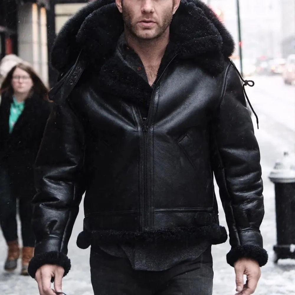 Cockpit USA Black B-3 Hooded Sheepskin Bomber Jacket