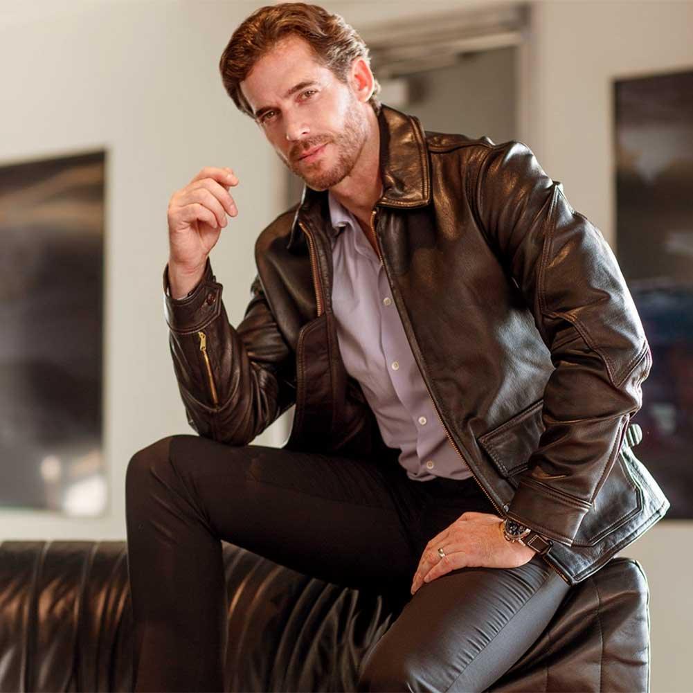 cut leather bottom, this handsome jacket is perfectly suited for both casual and formal occasions. This soft goatskin leather jacket is proudly made in the USA.