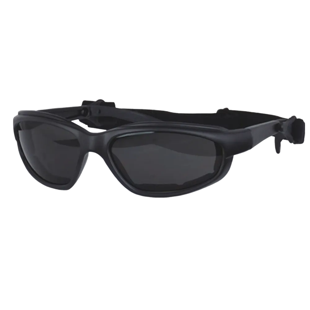 Our Daytona Goggle In Smoke, Comes With Sunglass Arms And Optional Goggle Strap. It Has UV, Anti-Fog Shatterproof Lenses And A Foam Ventilated Liner Eliminating Condensation. Overall, A Very Attractive, Comfortable And Inexpensive Goggle. It Even Comes With A Micro Fiber Nylon Carrying Case. Also Available In Clear, Transitional And Yellow.