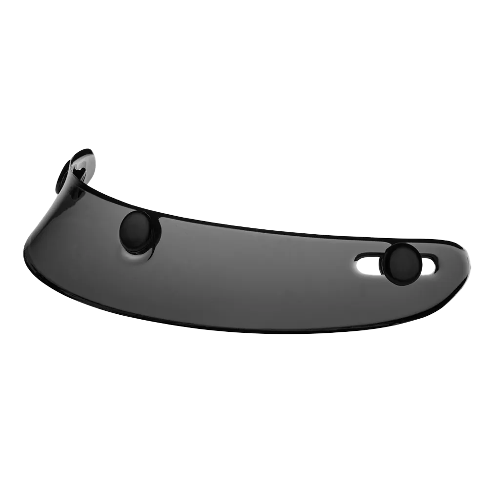 Our Daytona Mini Scoop Visor In Smoke Fits All Daytona Helmets With Snaps and Most Three Snap Helmets.  This Visor Is Also Available In Gloss Black, Dull Black, Chrome And The Snaps Are Adjustable.
