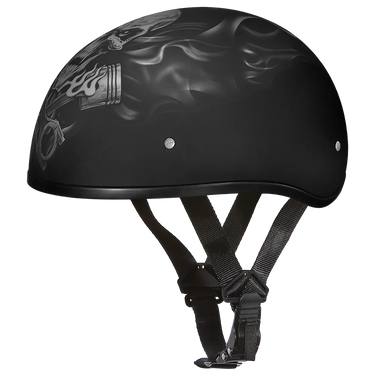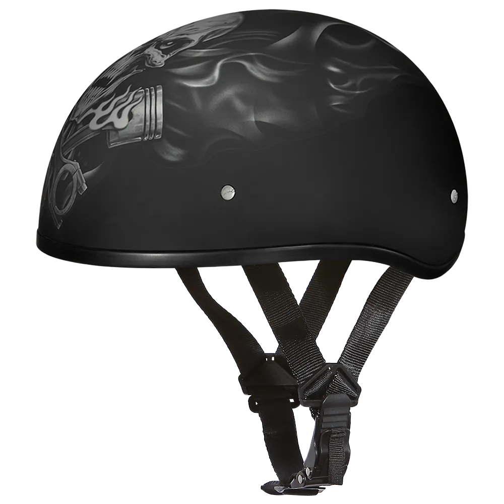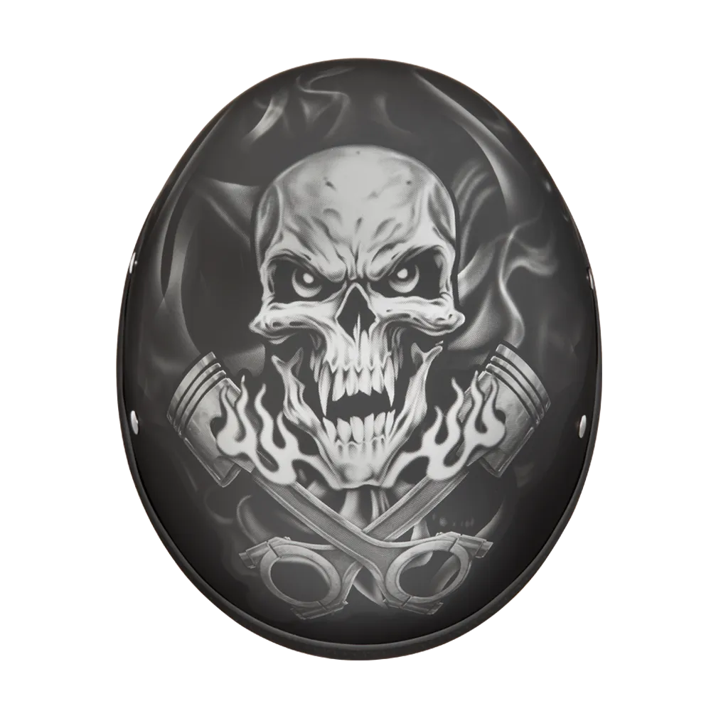 Daytona Motorcycle Half Face Helmet - Skull Cap Graphics - Pistons Skull | DOT Approved