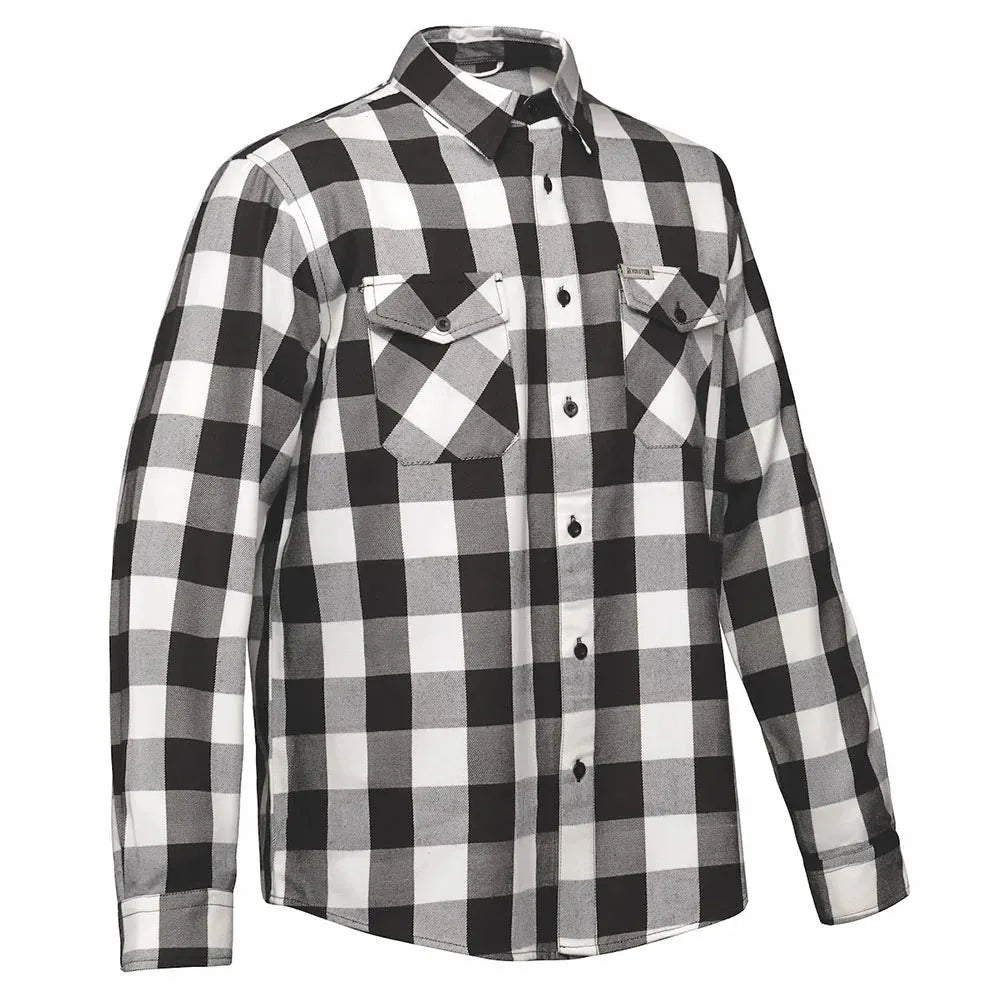 The Men's Black and White Flannel Shirt by DERRINGER Flannel Co. blends classic style with rugged functionality. Crafted from high-quality cotton, this shirt features a striking black and white color scheme that complements its robust construction. Perfect for both casual wear and outdoor activities, it combines comfort with durability, making it a versatile addition to any wardrobe.