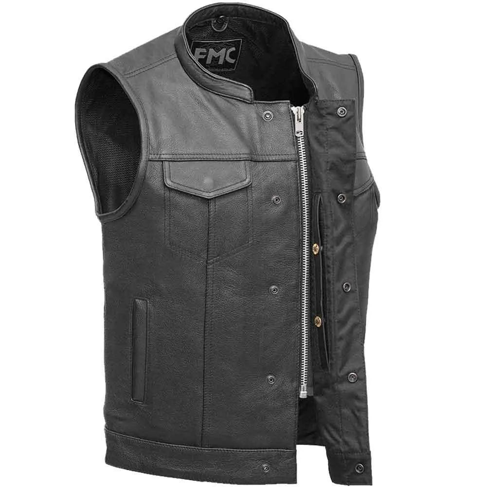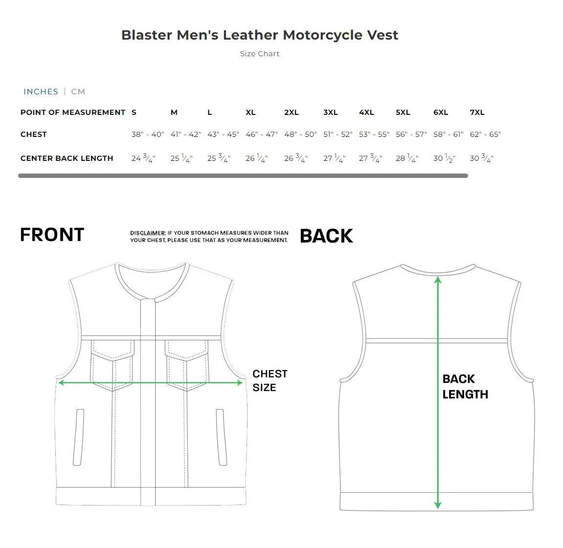 First Mfg Men's Blaster Leather Vest with Collar SIZE 2XLARGE - Final Sale (Ships Same Day)