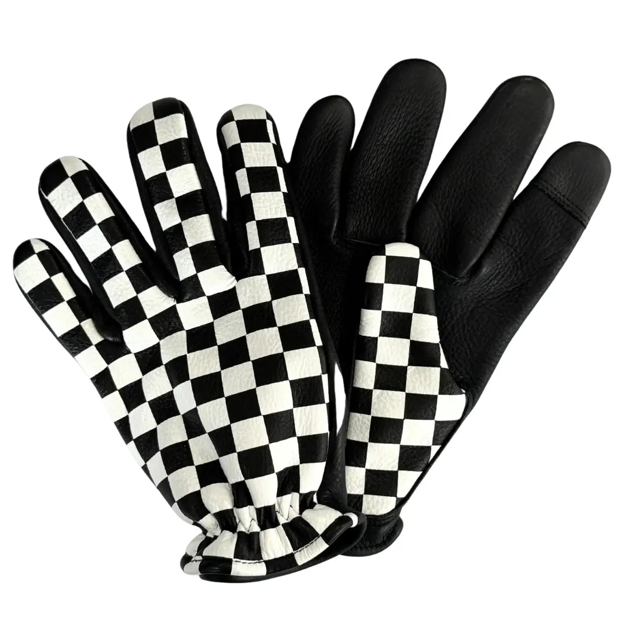 SAMPLE size LARGE - Legendary White-Black Checkered Short Wrist Motorcycle GlovesFeatures