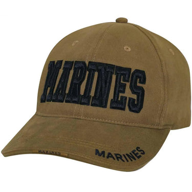 Rothco Deluxe low profile USMC baseball cap features a 100% brushed cotton twill with raised 3-D embroidered "Marines" text on the front panel & brim just has text. The U.S. Marines hat features a sandwich bill & back strap insignia with adjustable hook & loop closure and MARINES text. Officially licensed by the Unites States Marine Corps. One size fits most. Imported.