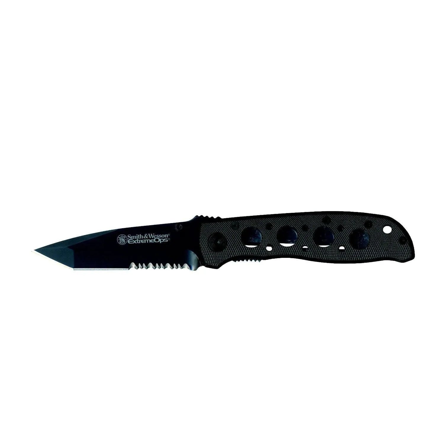 Smith & Wesson’s Extreme OPS Folding Knife SW is ideal for camping, hunting, survival, and more with a durable, partially-serrated stainless steel blade and convenient pocket clip.