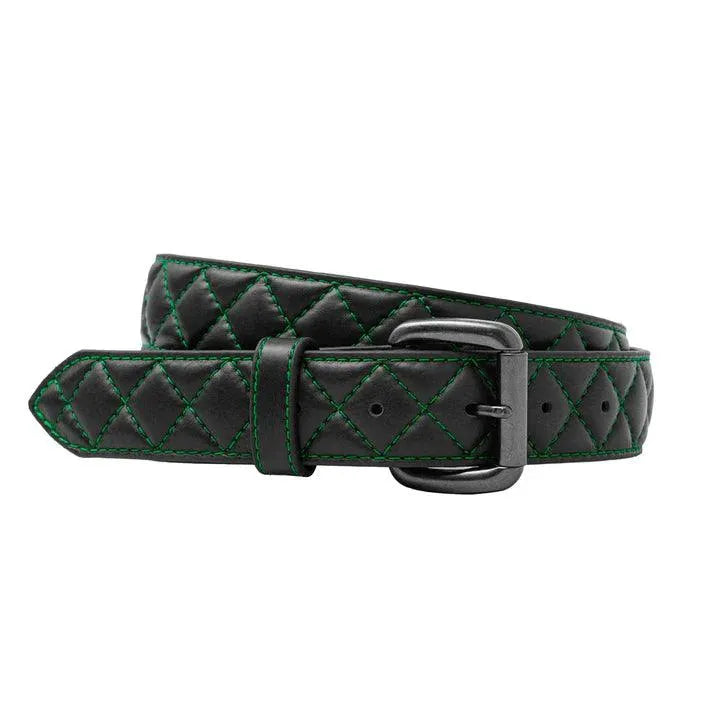 Women's Diamond Stitched Genuine Cowhide Leather Belt 1.5"