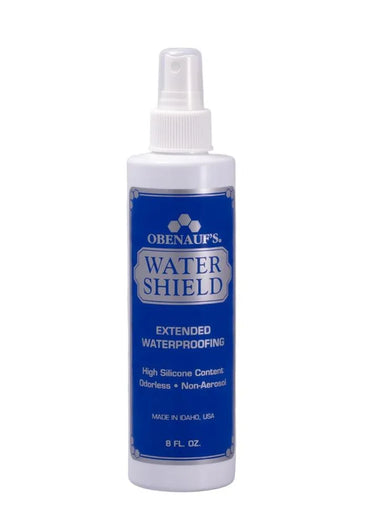 Obenauf's Water Shield is available in two sizes. The 8 ounce bottle comes with a finger pump sprayer providing a fine mist and is about the correct size to spray suede and fabric footwear. Make sure you spray your clean, dry, fabric boot laces as well. This will protect your laces from absorbing moisture and rotting.