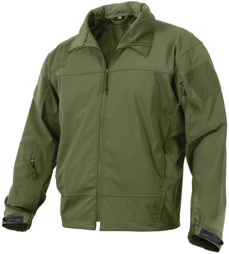 Rothco’s Covert Ops Lightweight Soft Shell Jacket is a durable & breathable tactical jacket. This lightweight soft shell zip up jacket features a 100% polyester waterproof outer shell, a concealed hood with zipper closure, and elastic cuffs with adjustable hook & loop. Two front slash zippered pockets allow for quick access to your gear, the zippered forearm pocket on the right sleeve is ideal for small gear and a zippered shoulder pocket on the left sleeve can fit important documents or even a cell phone. Each shoulder on the Rothco tactical jacket has a 4" loop field, ideal for patch attachment. Imported.