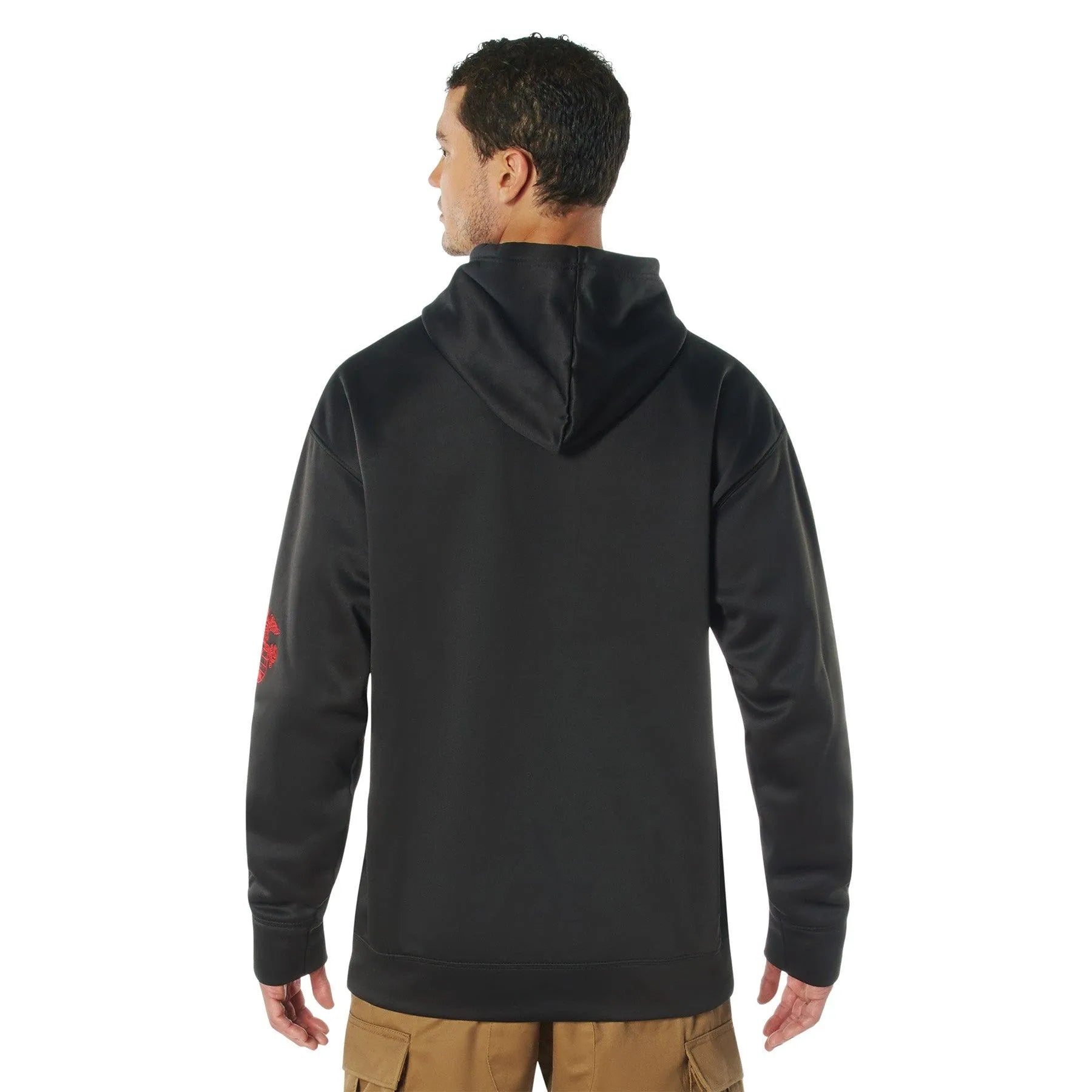 Proudly and patriotically showcase your support for American troops in Rothco’s Embroidered Pullover Hoodies. These pullover hooded sweatshirts feature glossy, raised embroidery of military branch text across the chests, along with their respective insignias on the left sleeves. The comfortable performance polyester composition warm fleece lining makes these pullovers perfect for cold weather, along with Rothco’s standard hand-warming kangaroo pocket that enables dual hand warming and provides storage space (Air Force hoodie composed of a cotton blend). Elastic wrist cuffs and an adjustable drawstring hood insulate you from the elements. When you need a patriotic sweatshirt that keeps you warm and toasty while you support your country’s finest, check out Rothco’s Embroidered Pullover Hoodie.