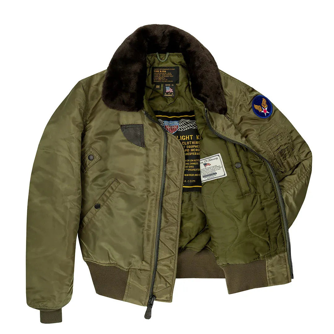 When the B-15 replaced the leather A-2 for a period during WWll, many pilots objected until they realized the virtues of the B-15 flight jacket such as the warmth and durability. Now you can buy this classic men's olive green jacket here today.