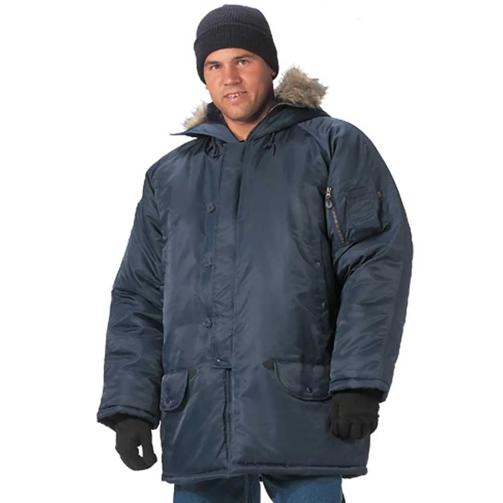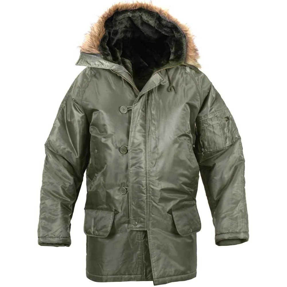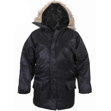 The Rothco N-3B men's snorkel parka consists of a Nylon shell, water repellent lining w/ drawstring hood, Synthetic Coyote Fur trim heavyweight material and sleeve pockets. The men's parka jacket has an extra full cut and is available in sizes from Small - 3XLarge.