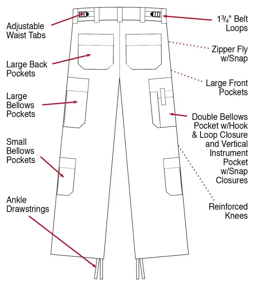 These Rothco EMT pants offer an excellent value and are an extremely durable pant. The men's paramedic pants are constructed with a rugged poly/cotton twill material that is pre-hemmed and ready to wear with 32" inseam. The pants feature nine pockets, including slot pockets for scissors, flashlights, and other emergency services equipment, large back pockets, large front pockets, and a small bellows pocket.