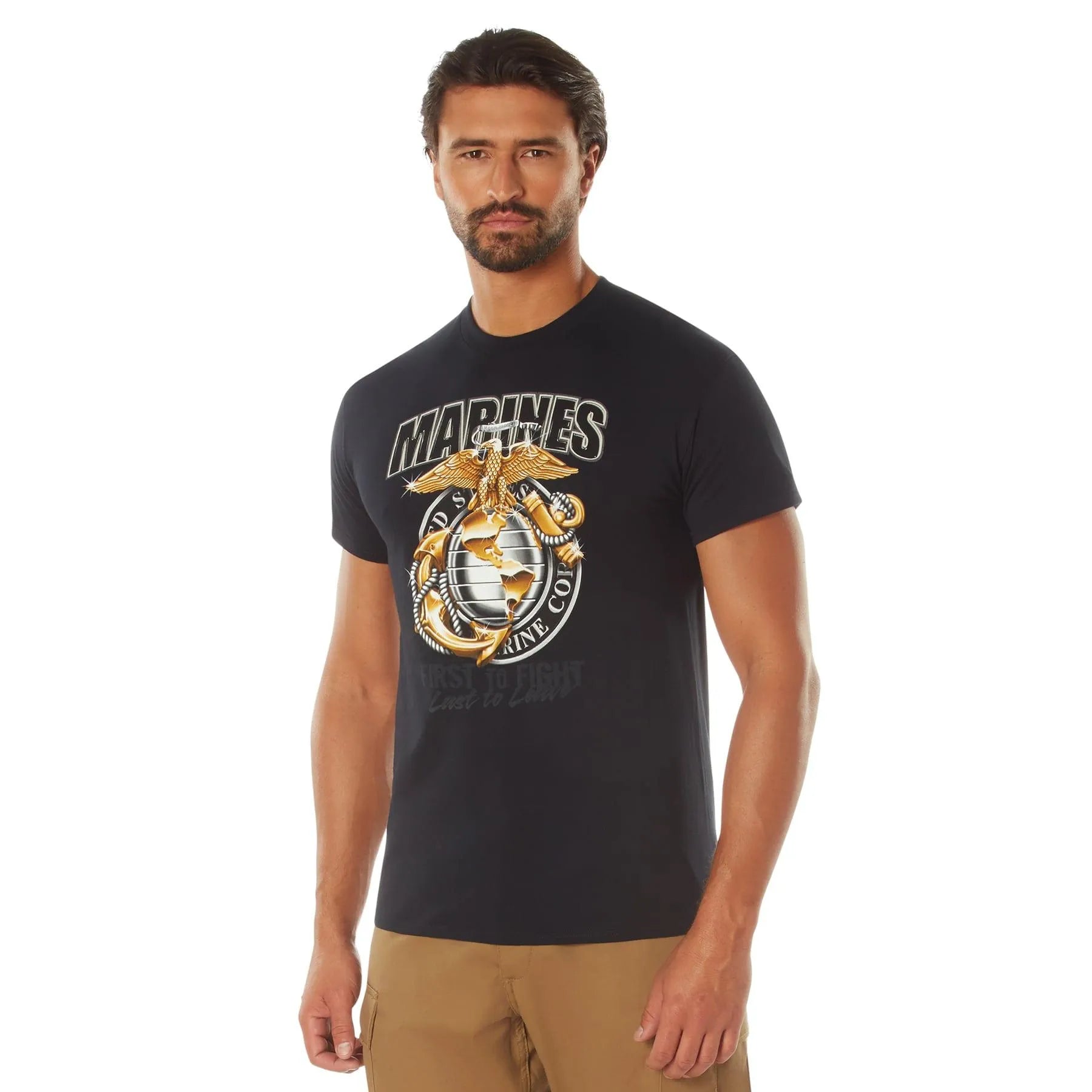 Black Ink's First To Fight T-shirt is a heavyweight, 100% cotton, 2-sided print, pre-shrunk tee perfect for casual wear. Officially Licensed by the United States Marine Corps.