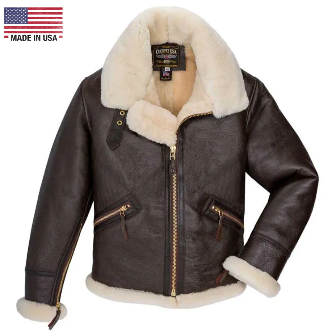 Cockpit USA Men’s B-9 Scout Sheepskin Bomber Jacket | WWII American Shearling Flight Jacket – Made in USA