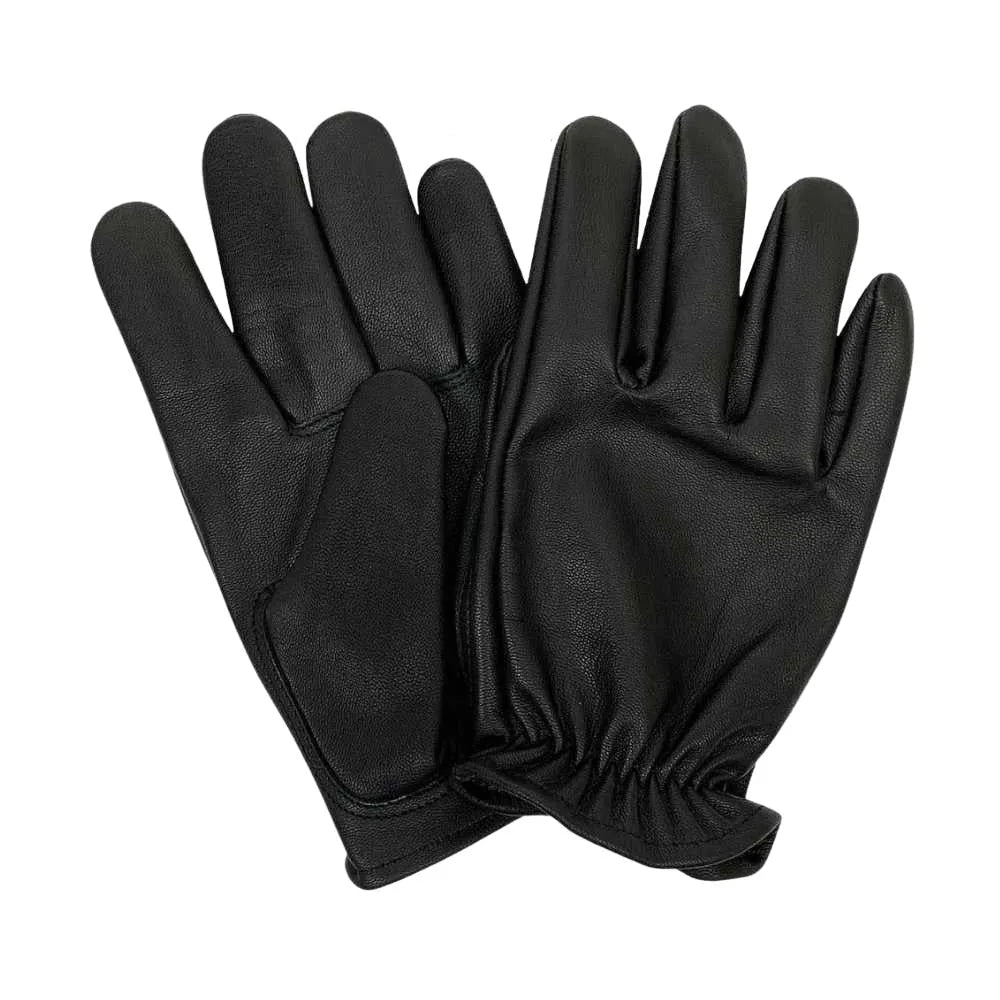 Goatskin has a reputation for being lighter weight, but very tough and cut resistant. Our Legendary Bad Billy Black Goatskin Short Wrist Gloves are lighter in weight than our Deerskin gloves, but stubbornly tough! These Bad Billy Black Goatskin Short Wrist Gloves are made in the USA and crafted with select goatskin leather, sewn for extra long life and strength. These men's short wrist leather gloves feature an elasticized cuff at the wrist bone, providing great throttle sensitivity and comfort. They are perfect for warmer climates where heavier gloves may be too warm and are also great as driving gloves, shooting gloves, and for tactical applications.