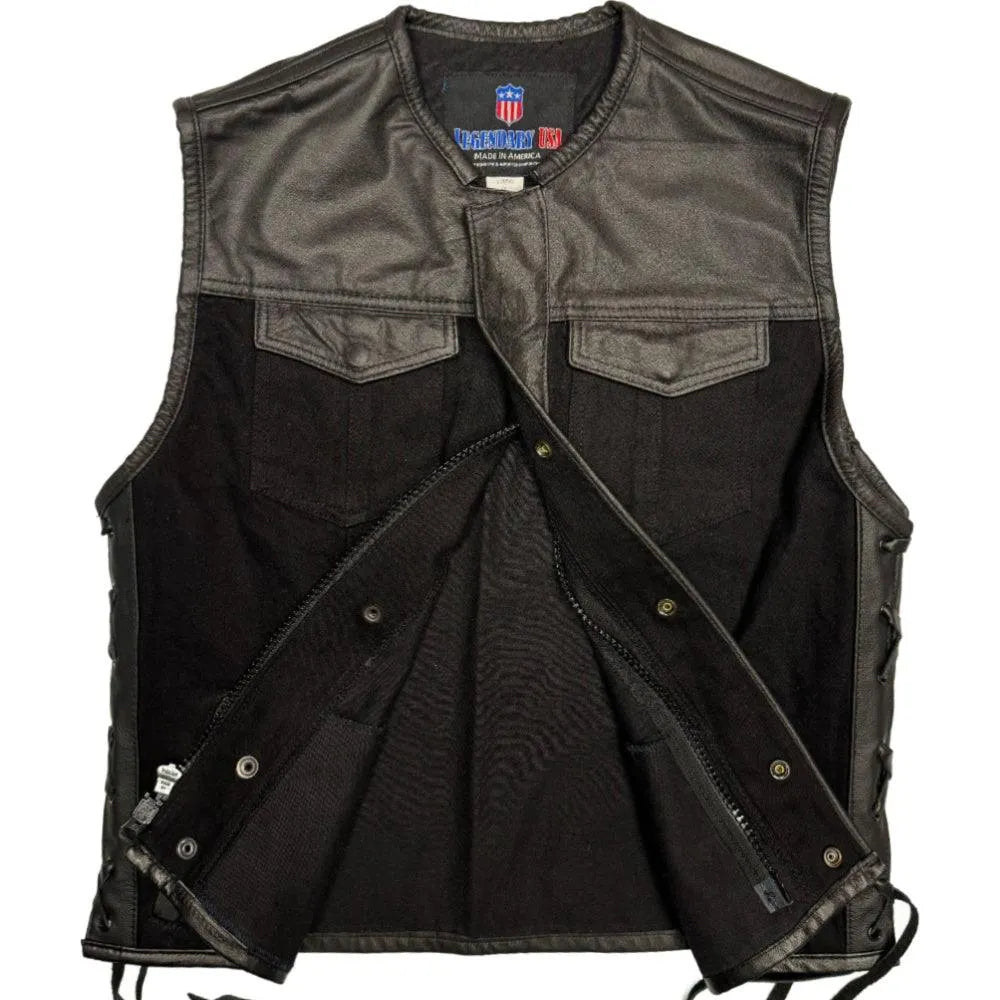 Legendary Black Demo Denim Leather Motorcycle Vest