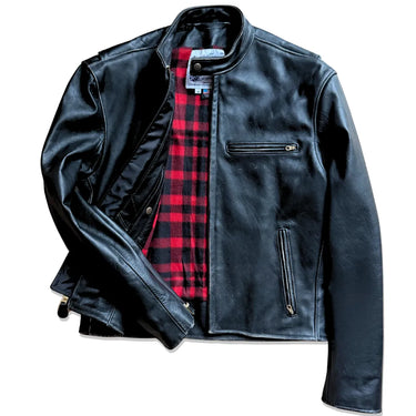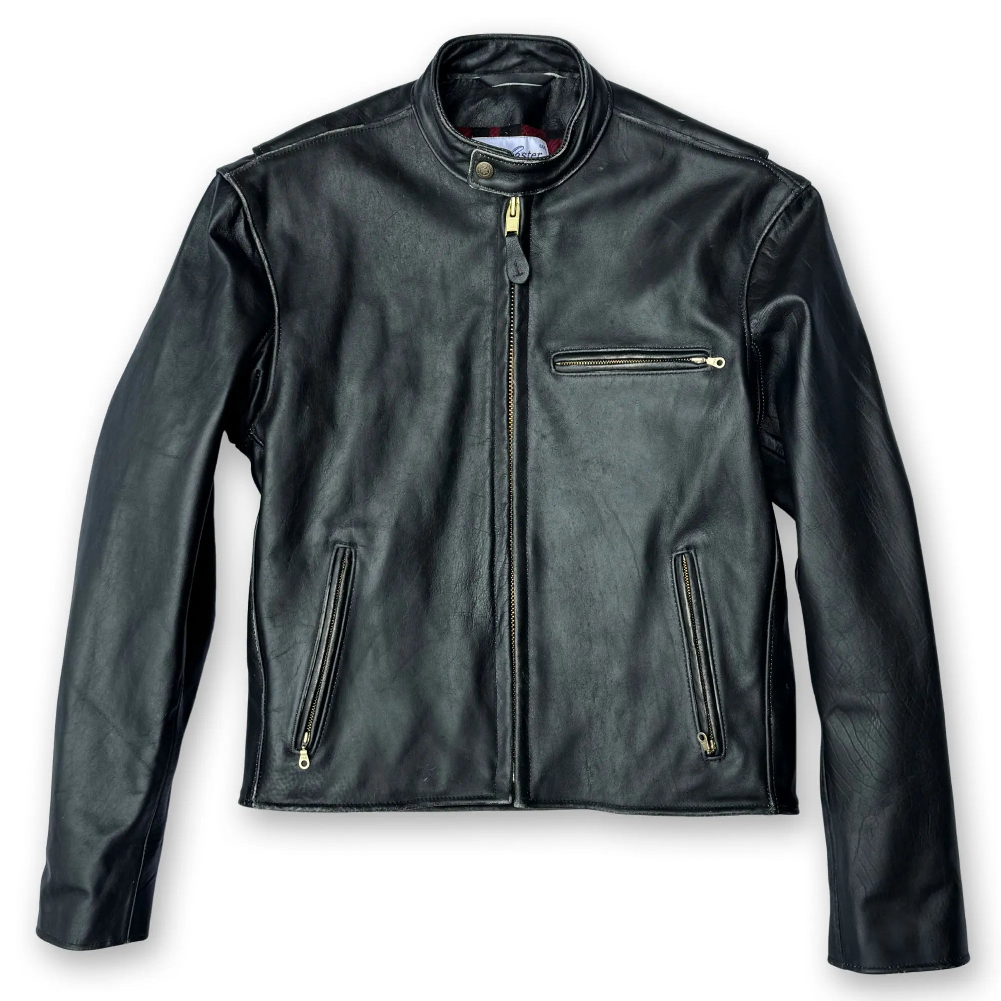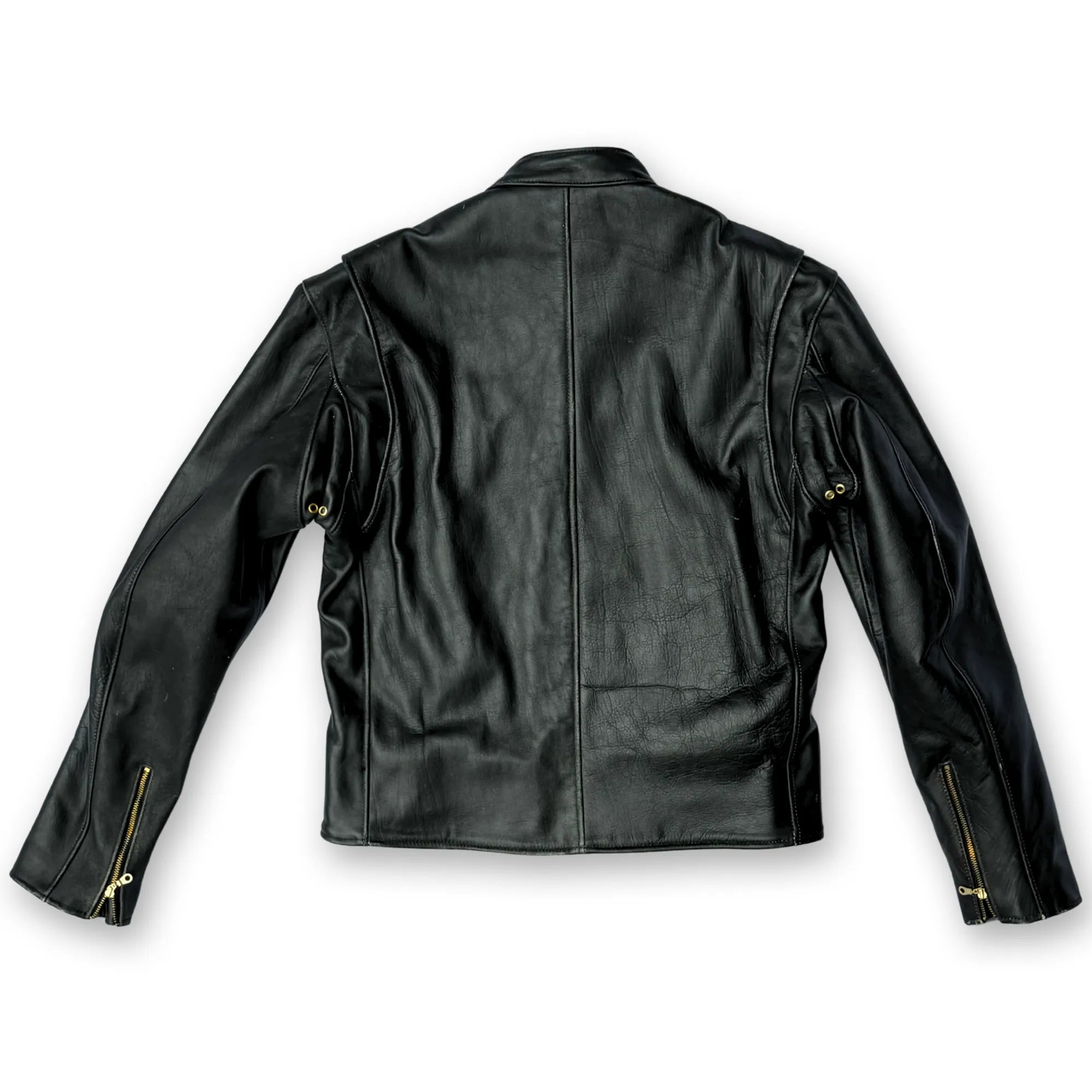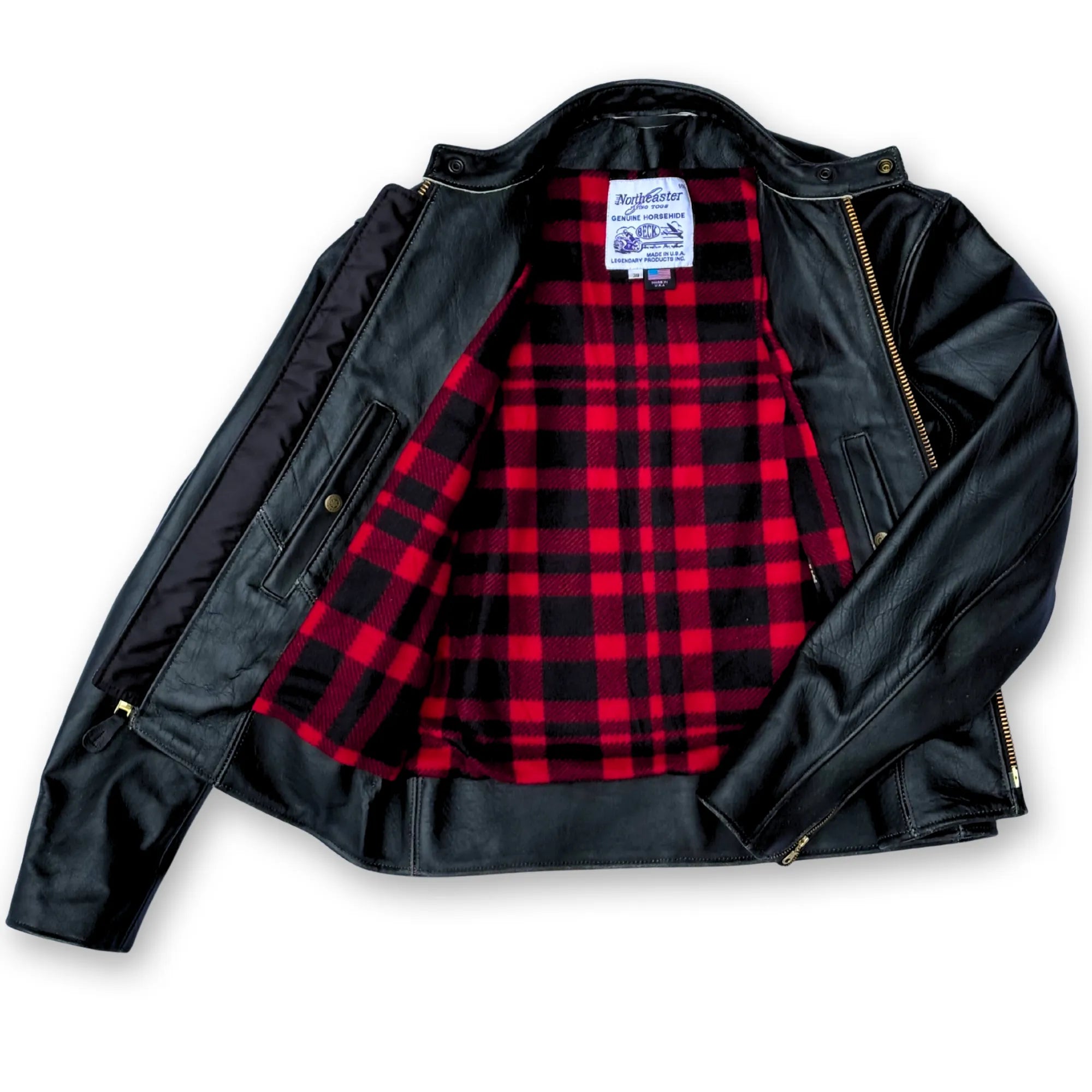 Made in the USA from 1.3mm medium weight front quarter horsehide, this jacket is aniline drum-dyed, hand-cut, and tumbled for 60 minutes to produce a naturally distressed, broken-in finish. The leather is firm yet flexible, designed to mold to the rider’s shape and develop a rich patina over time.