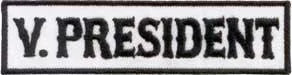 White patch with black carnival lettering signifies your position within the motorcycle club or chapter. Great addition to your patch collection. Dimensions: 4" W X 1.25" H.
