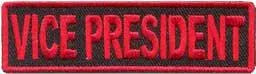 Black patch with red lettering signifies your position within the motorcycle club or chapter. Great addition to your patch collection. Dimensions: 3.5" W X 1" H.