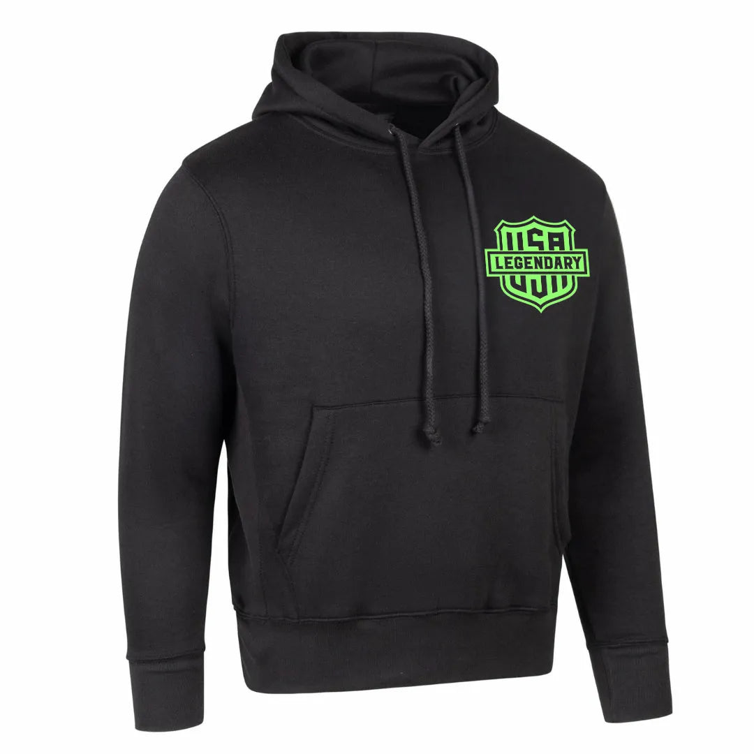 Legendary 'Neon & Color Shield' Best Damn Motorcycle Hoodie. The Legendary ‘Custom Cuts' Hoodie was so comfortable that we are bringing it back! We didn't make the first hoodie, but we made it the best with a warm and comfy 8.3 oz cotton blend that you won't want to take off. The '& Color Shield' pullover has a double-layer hood with drawstrings, a big front pocket, and a cozy fleece lining that keeps you really warm. We chose the best mix of 60% cotton and 40% polyester to make it feel just right. Our special screen printing makes this perfect-fitting hoodie even cooler. Truly the best motorcycle hoodie you will ever own!