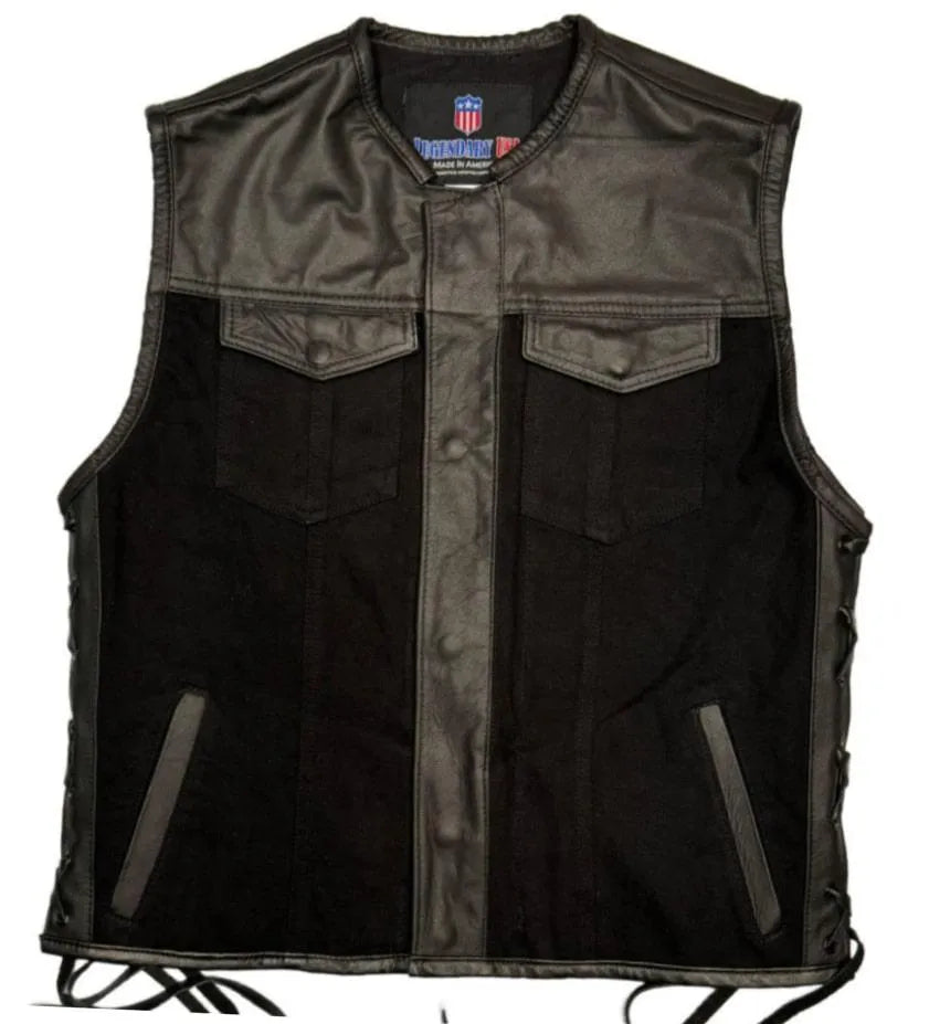 Legendary Black Demo Denim Leather Motorcycle Vest