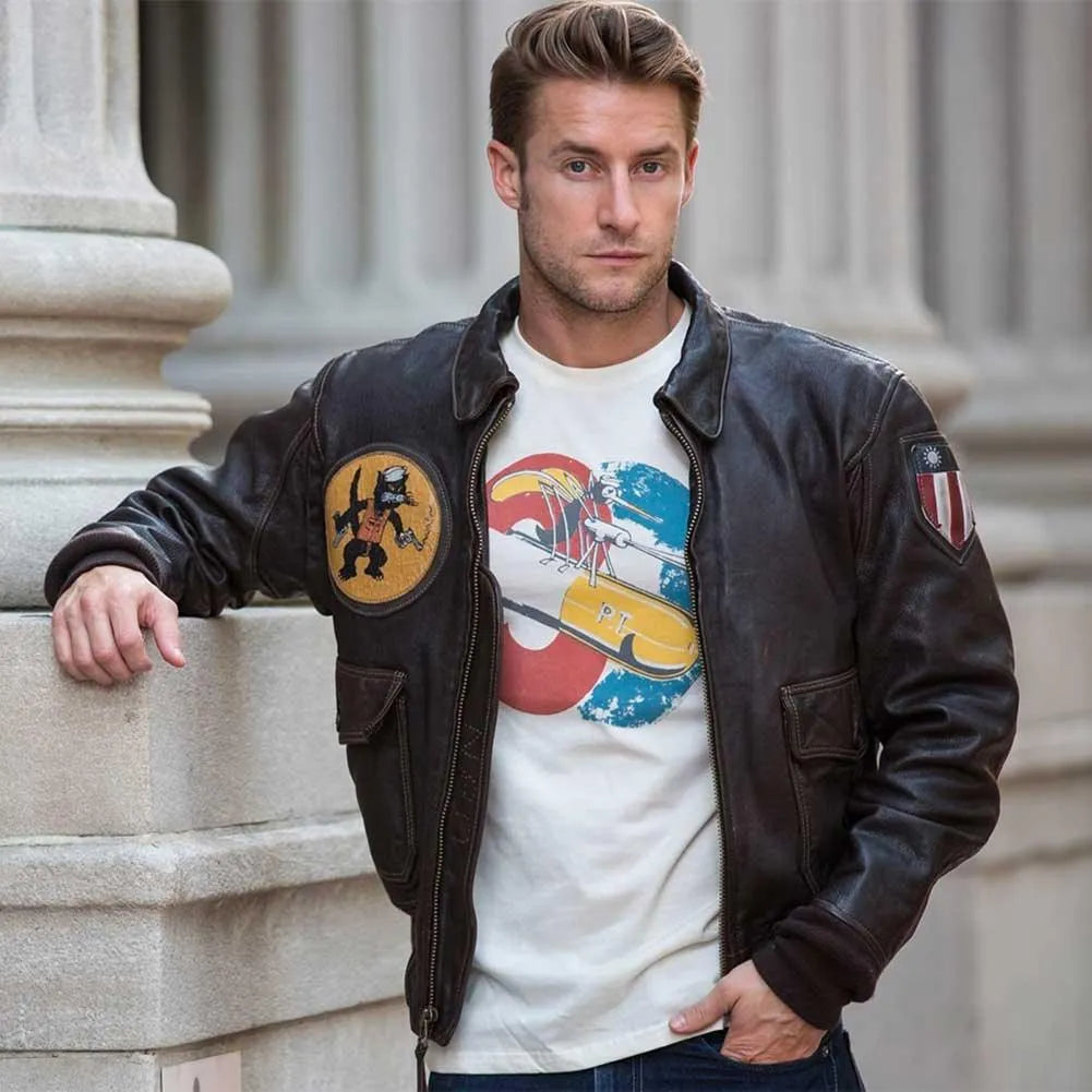Pilots in the South Pacific removed fur collars, personalized their jackets with hand-painted markings, and adapted them for tropical climates—traditions faithfully recreated here. With a bi-swing back for mobility, vented underarm gussets, a wind-flapped zipper, and Cockpit USA’s embroidered Black Cats lining, this jacket blends historical authenticity with modern comfort. No two pieces will ever look exactly alike, just like the originals that saw combat.