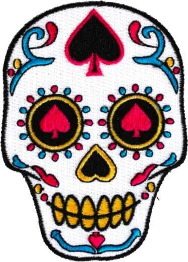 Laser cut multi-color patch of Mexican sugar skull tradition. Great addition to your patch collection. Dimensions: 2.875" W X 4" H.