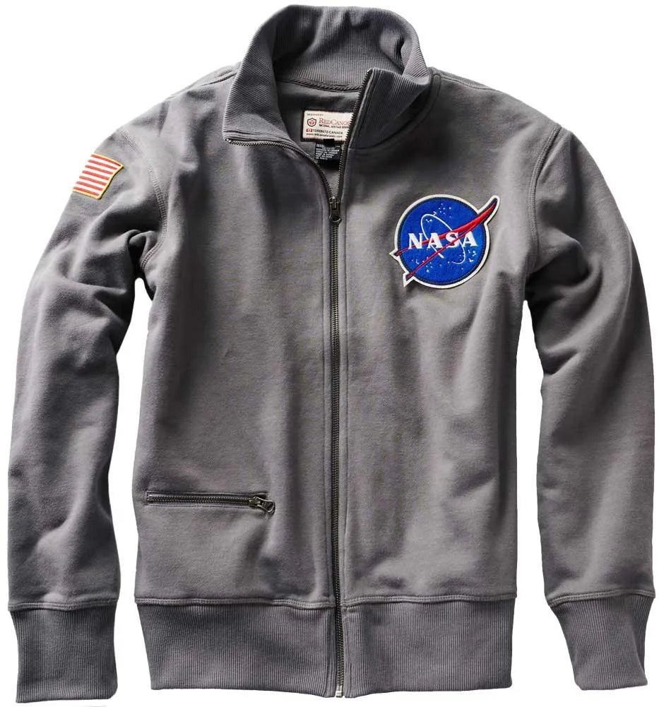 This gray fleece track jacket is officially licensed NASA apparel and can be found at the Kennedy Space Center. Genuine NASA patch on left chest with collegiate style "rocket scientist"text on back. The NASA Rocket Scientist jacket is imported.