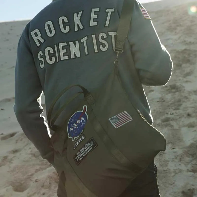 • Varsity style ROCKET SCIENTIST sewn text on back