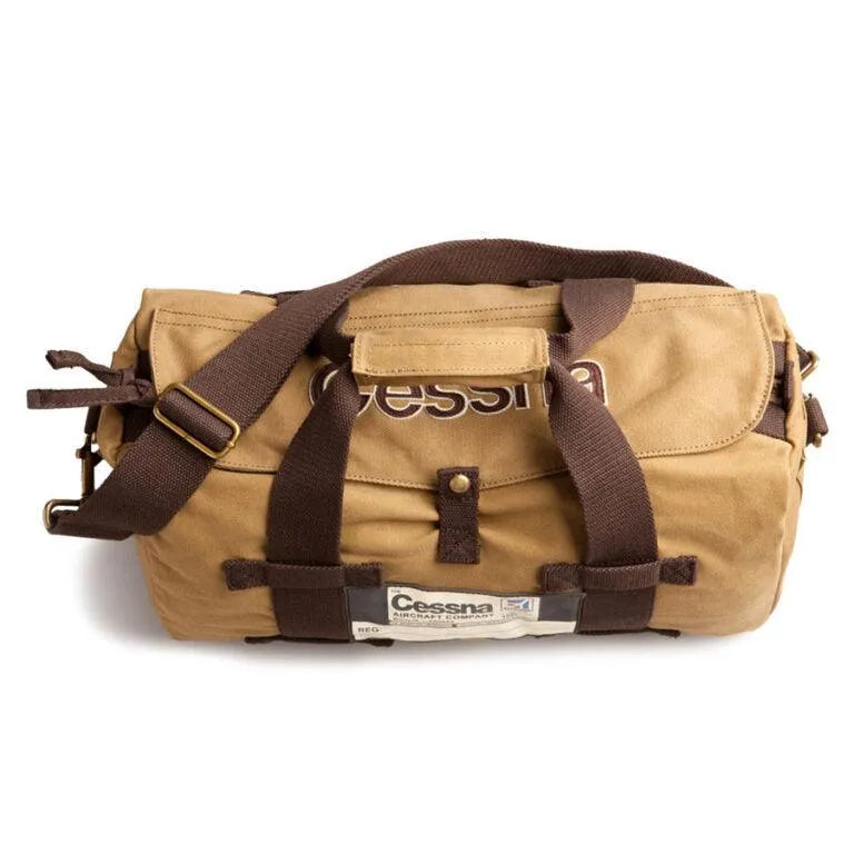 The Cessna Stow fits a headset, navigational tools and your pilot operating handbook as easily as your gym gear. Features rugged cotton twill, brass hardware, YKK zippers and adjustable shoulder strap.