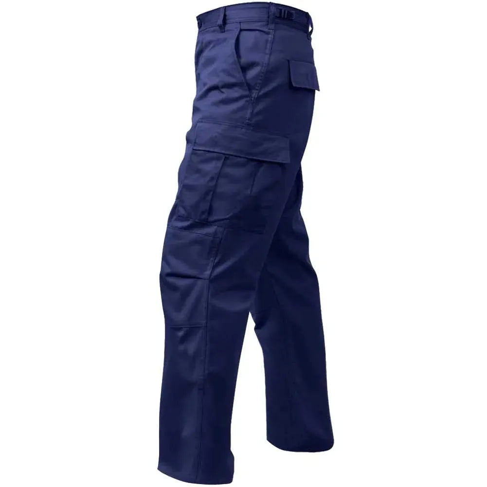 Rothco's solid color military style Battle Dress Uniform Cargo Pants are made with comfortable, durable poly/cotton twill with a reinforced seat & knees, designed for military, tactical and public safety personnel for a long lasting wear. The Rothco BDU pants include 6 utility pockets (2 button down back pockets, 2 front slash pockets and 2 cargo pockets). Additional features of the tactical BDU pants include an adjustable waist tabs for a secure fit, button fly, drawstring bottoms. Imported.