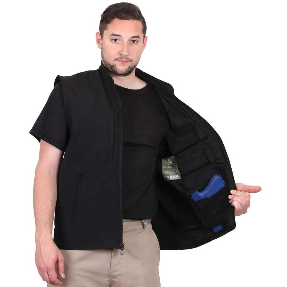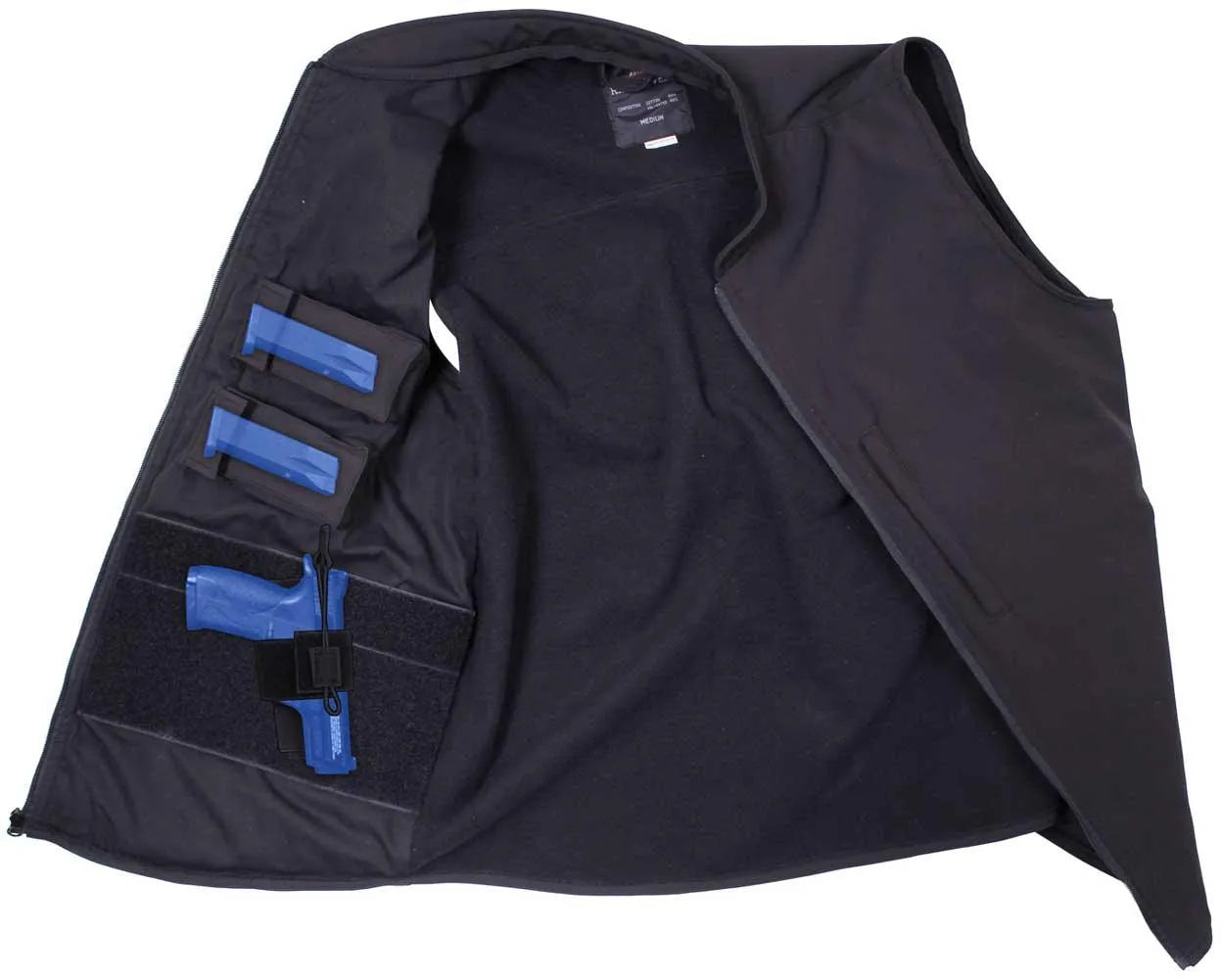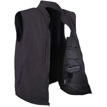 Rothco Concealed Carry Soft Shell Vest is durable, lightweight and breathable; the concealed carry vest features a 100% polyester shell with a three layer construction that deflects wind wick away moisture and retains body heat. It is the perfect vest to keep you cool under pressure. The Rothco concealed carry vest is equipped with two interior loop fields for concealed holster attachment, one on each side, and four internal mag pouches (two on each side). In addition, the mens soft shell vest features two front slash zippered chest pockets and two side slash zippered pockets for storage of your essential everyday carry gear. Universal Hook & Loop Holster available and sold separately.
