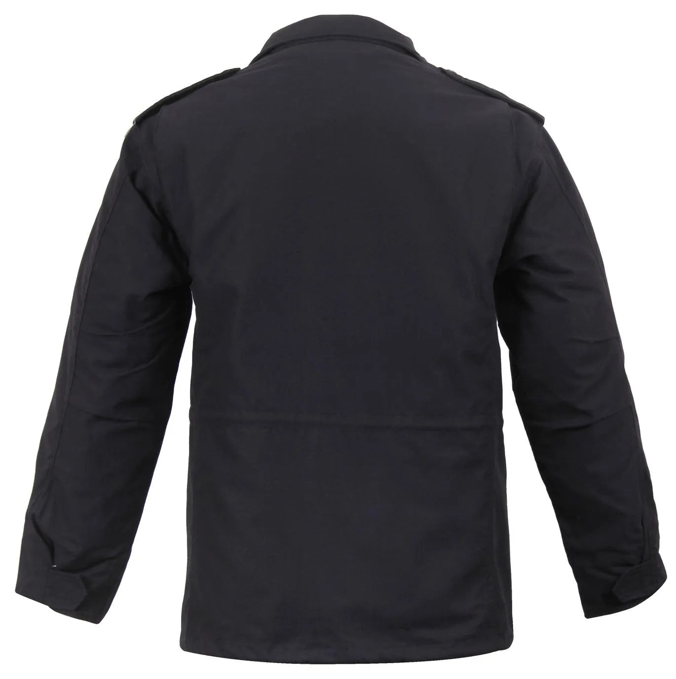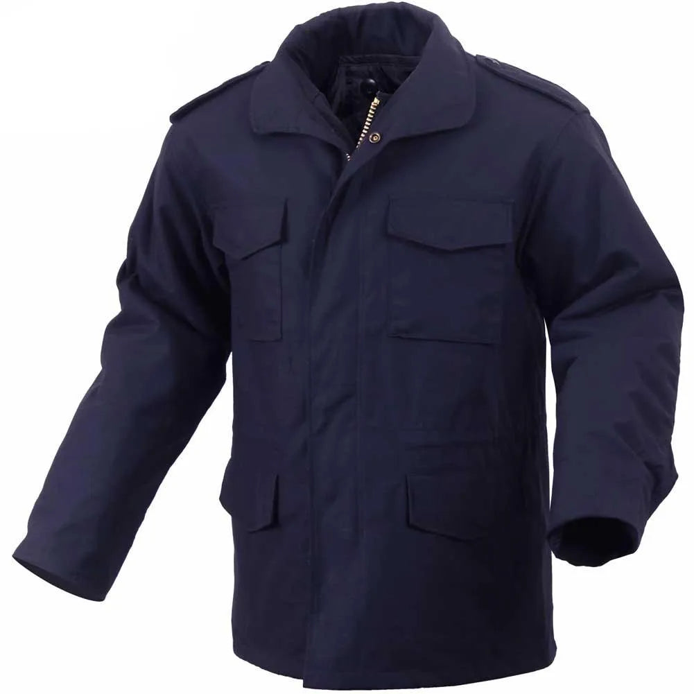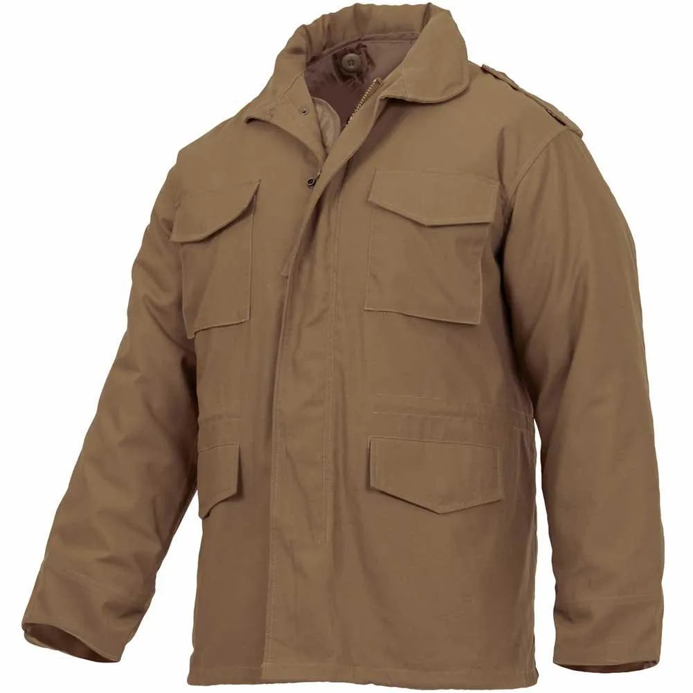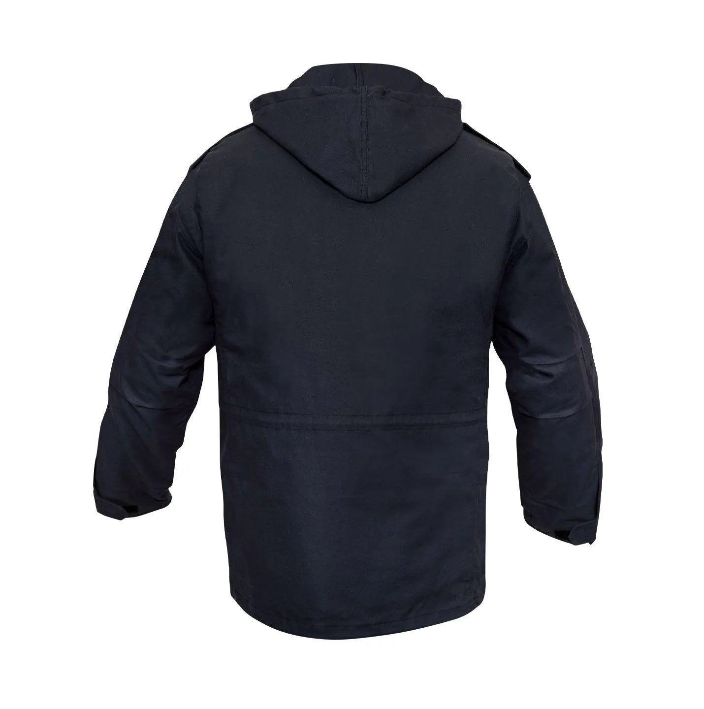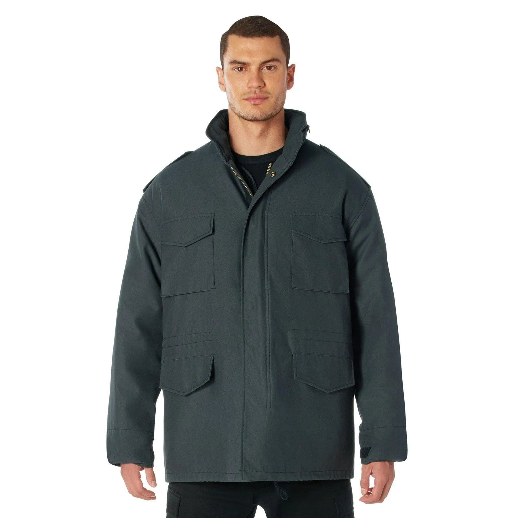 The Rothco M65 field jacket is a classic piece of military outerwear. The jacket features a water repellent poly/cotton twill, four snap-up pockets, concealed hood, epaulets, waist hood and bottom drawstrings, removable button-in liner, hook & loop fastener sleeve cuffs and heavy brass zipper & snap up storm flaps. This green field jacket offers versatility that allows you to wear it through multiple seasons.