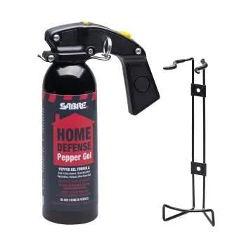 Protect your home and your family from intruders with the SABRE Red Home Defense Pepper Gel with Wall Mount Clip. Pepper gel deploys in a powerful stream and has a long 25-foot (7.6 meter) range, putting more distance between you and an intruder. Remain confident against multiple threats with 32 maximum strength red pepper gel bursts (5X the competition).