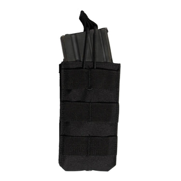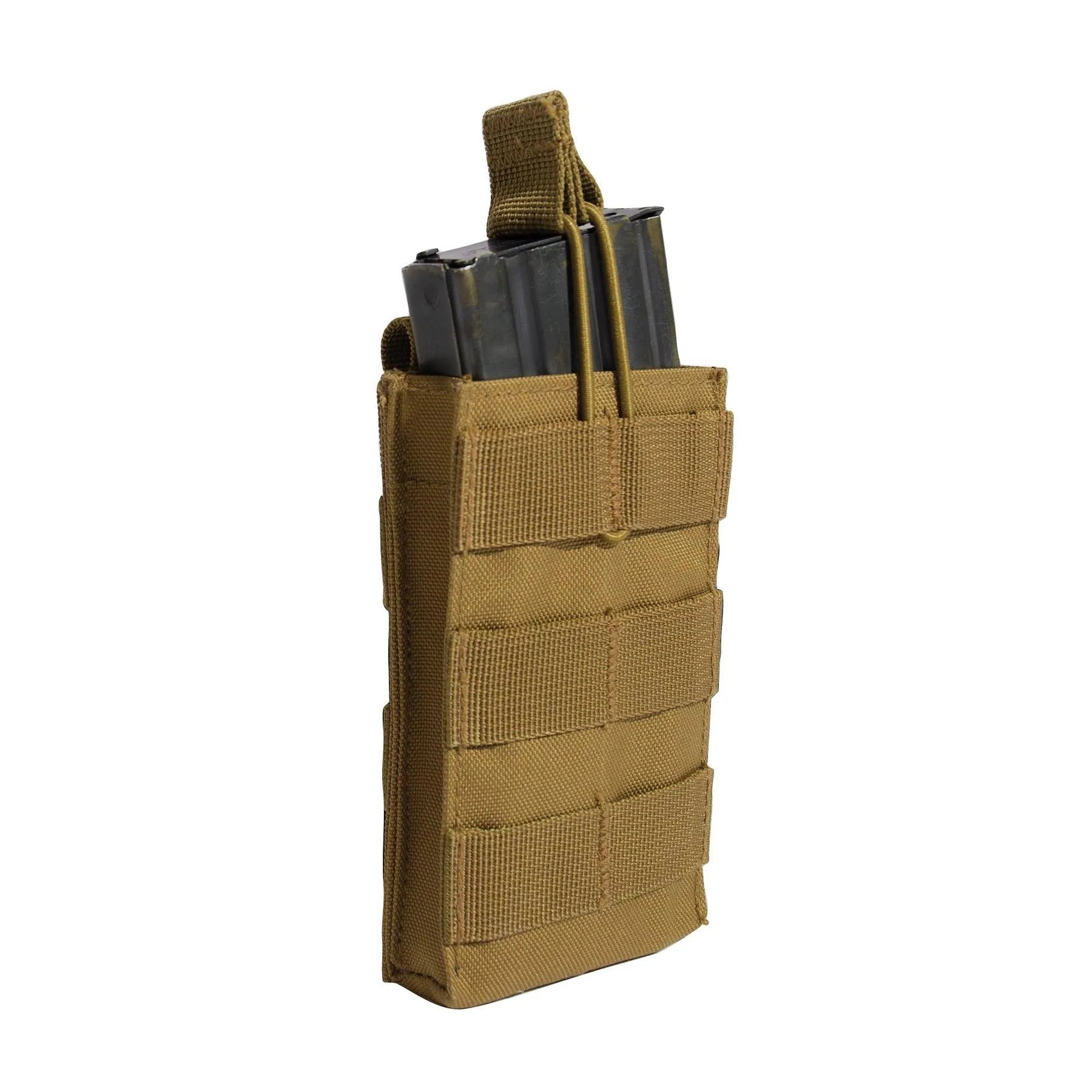 Rothco’s MOLLE Open Top Single Mag Pouch fits most standard sized rifle magazines and features two MOLLE clips on the back for mounting on tactical vests.