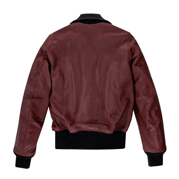 The new Cockpit USA women’s Amelia Jacket in Burgundy is crafted from the finest wholegrain lambskin which highlights the jacket’s feminine style and sleek silhouette of the original worn by Amelia Earhart. This handcrafted burgundy version features all the similar details of Amelia’s jacket with a contrasting knit collar, cuffs and waistband in black for a contemporary style that is perfect for everyday wear. Order the new Burgundy Amelia Earhart jacket today!