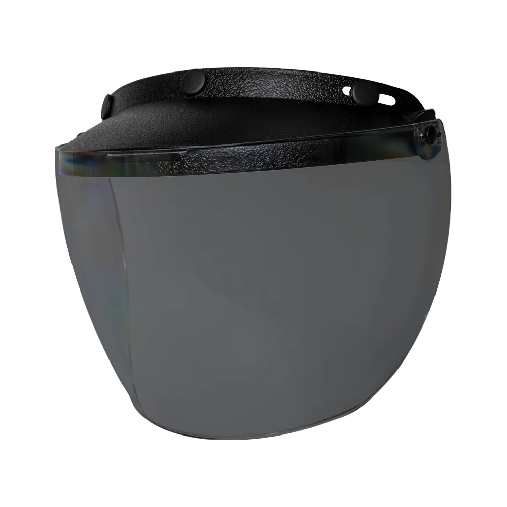 Our Daytona Flip Up Visor In Smoke Fits All Daytona Helmets With Snaps And Most Other Three Snap Helmets.  The Flip Up Visor Comes With Adjustable Snaps, Has Anti-Scratch Coating And Is Also Available In Clear, Mirror, Rainbow And Yellow.