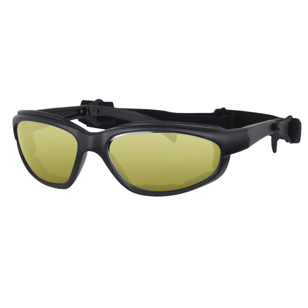 Our Daytona Goggle In Yellow, Comes With Sunglass Arms And Optional Goggle Strap.  It Has UV, Anti-Fog Shatterproof Lenses And A Foam Ventilated Liner Eliminating Condensation.  Overall, A Very Attractive, Comfortable And Inexpensive Goggle.  It Even Comes With A Micro Fiber Nylon Carrying Case.  Also Available In Clear, Smoke And Transitional.