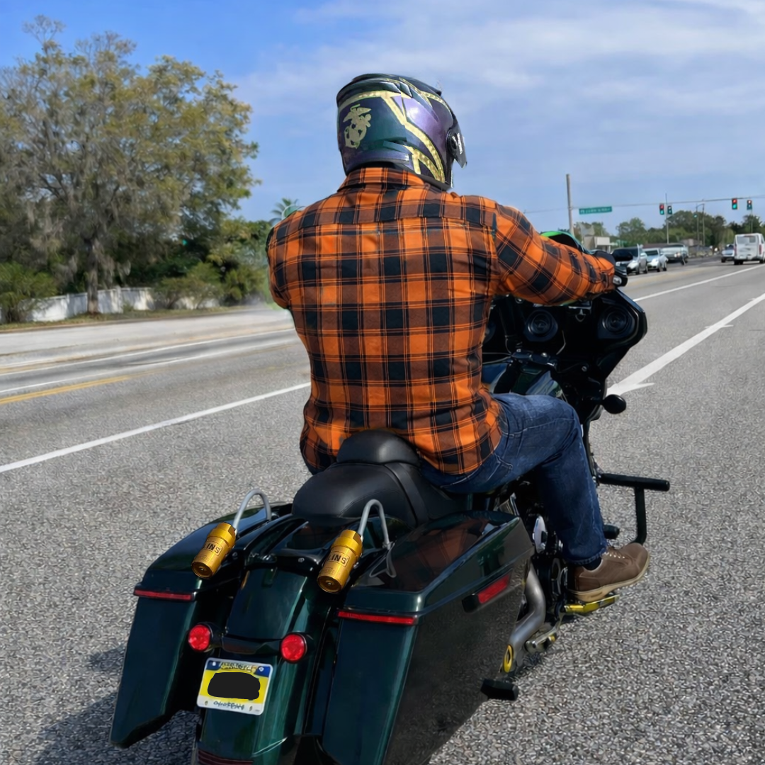 The heavyweight cotton flannel holds up against wind, friction, and long hours in the saddle, while the black and brown colorway keeps a low-profile, no-nonsense look. Whether worn as a motorcycle riding shirt or a standalone flannel, this piece is made to stay intact when conditions—or tempers—escalate.