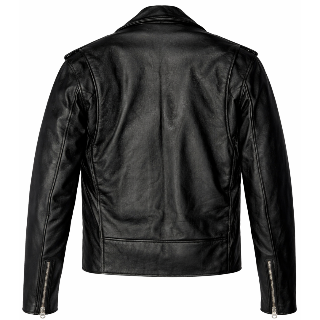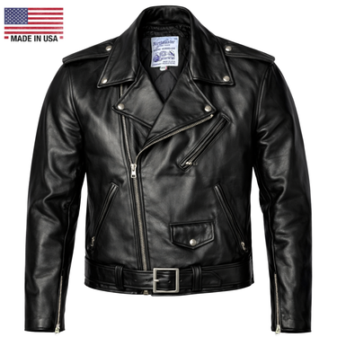 The BECK® 999 is back, reimagining the iconic motorcycle jacket for a new generation of riders. Crafted from genuine front quarter horsehide drum-dyed black midweight horsehide, this jacket honors its roots while showcasing modern craftsmanship. Each piece is proudly MADE IN THE USA, delivering unmatched quality and rugged durability. This black horsehide leather jacket is built to last a lifetime, aging gracefully as it molds to its owner and develops character over the years. The BECK® 999 balances vintage appeal with contemporary style and functionality.