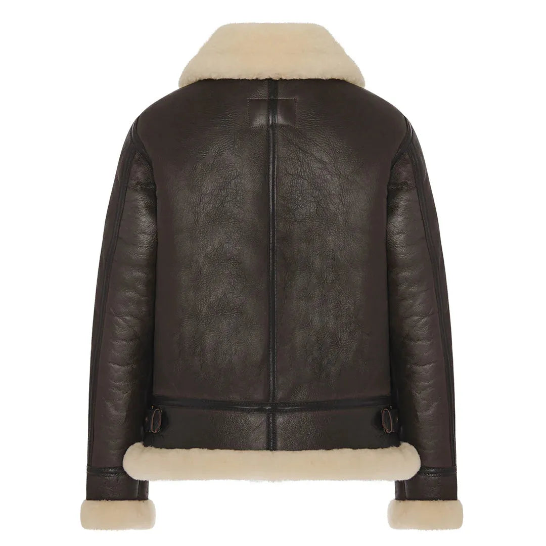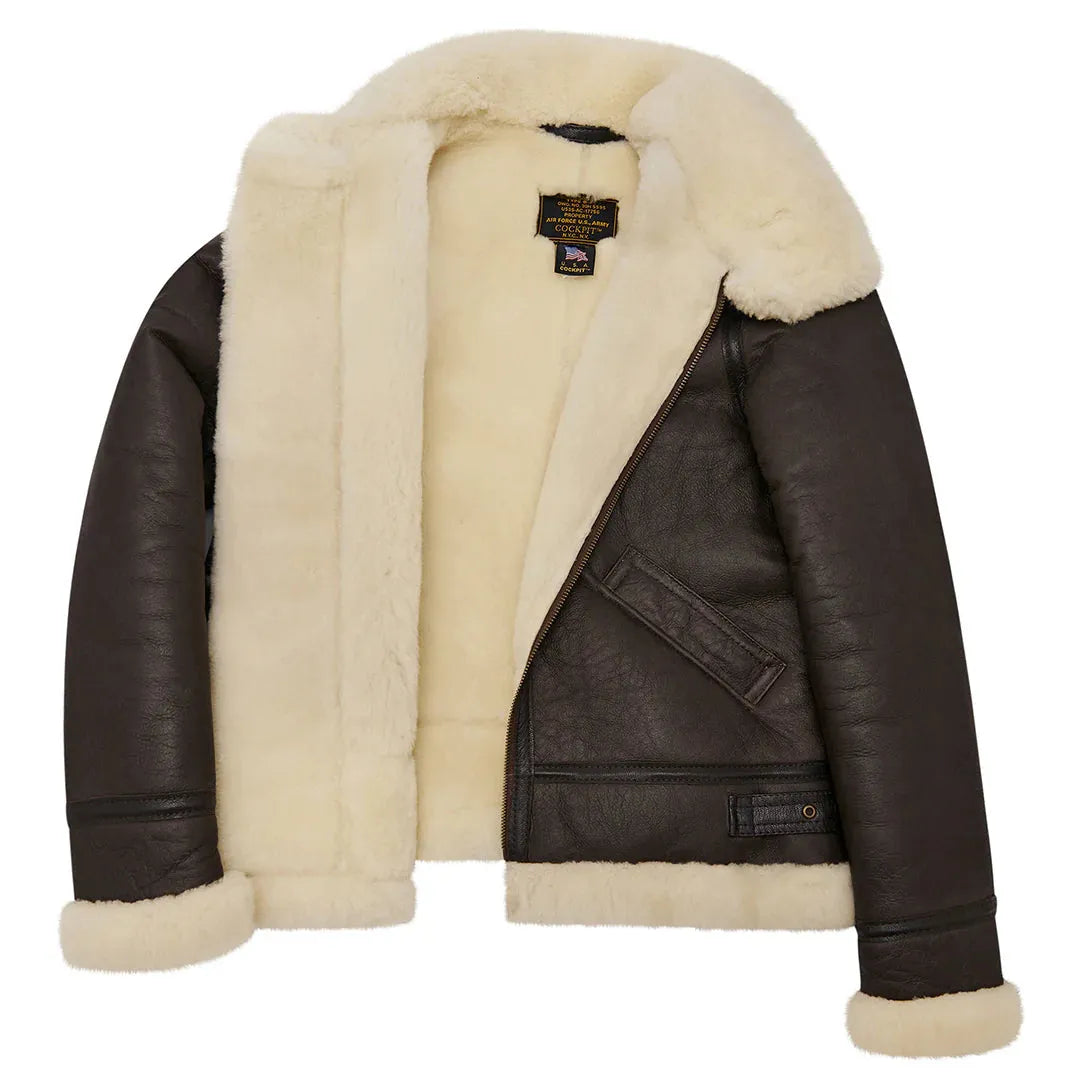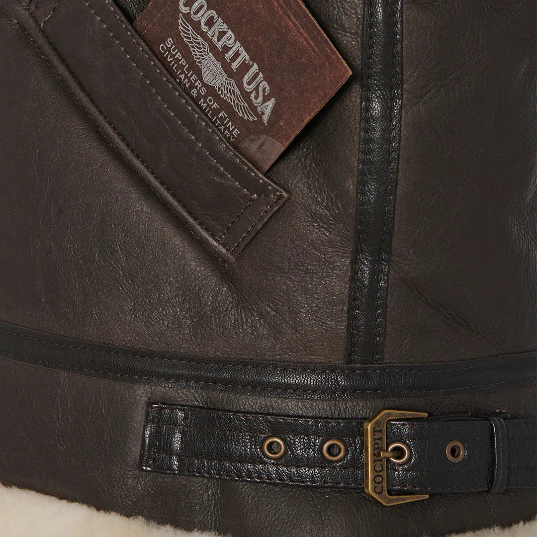 Cockpit USA brings the legendary B-3 American shearling flight jacket to women with a design that honors the courageous female air service pilots of World War II. Crafted from soft, double-faced shearling with an authentic antique exterior, this women’s B-3 captures the exact look and warmth of the original bomber jackets worn in open-cockpit aircraft. Tailored for a feminine fit yet built with uncompromising durability, it’s a true cold-weather icon.