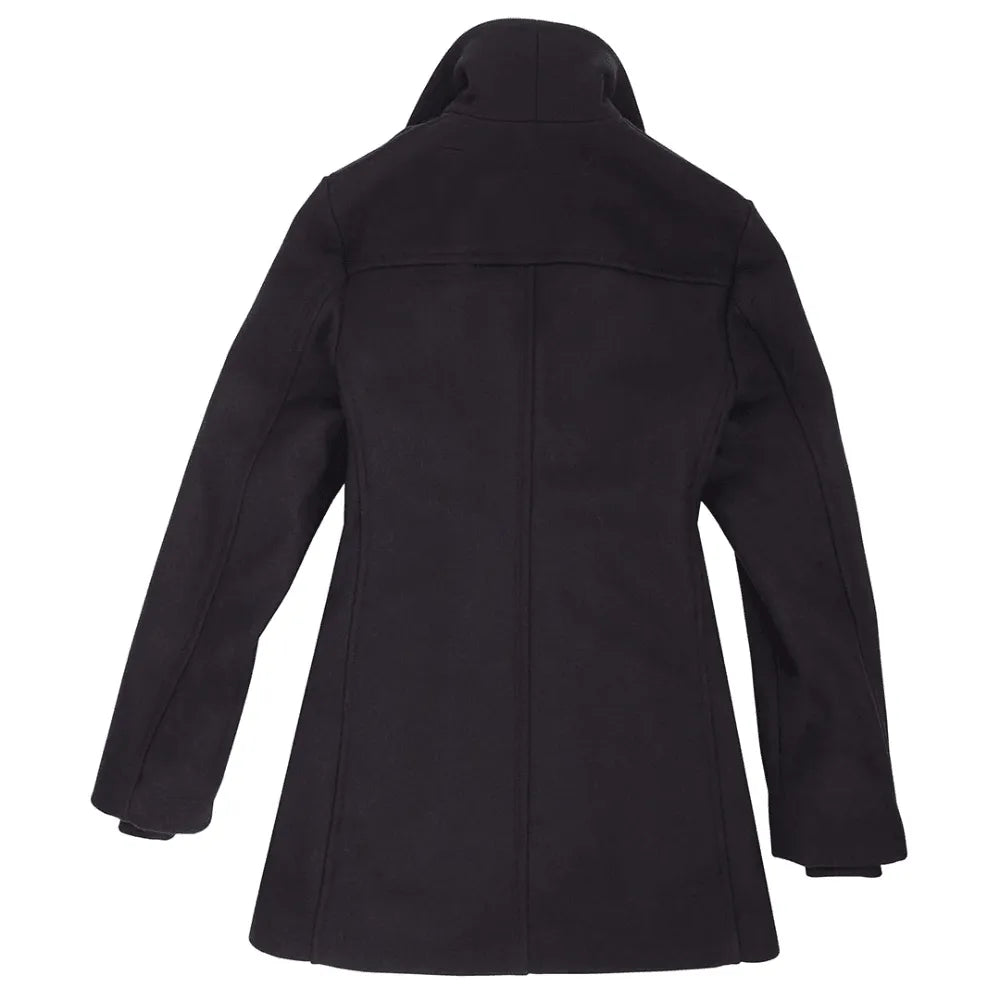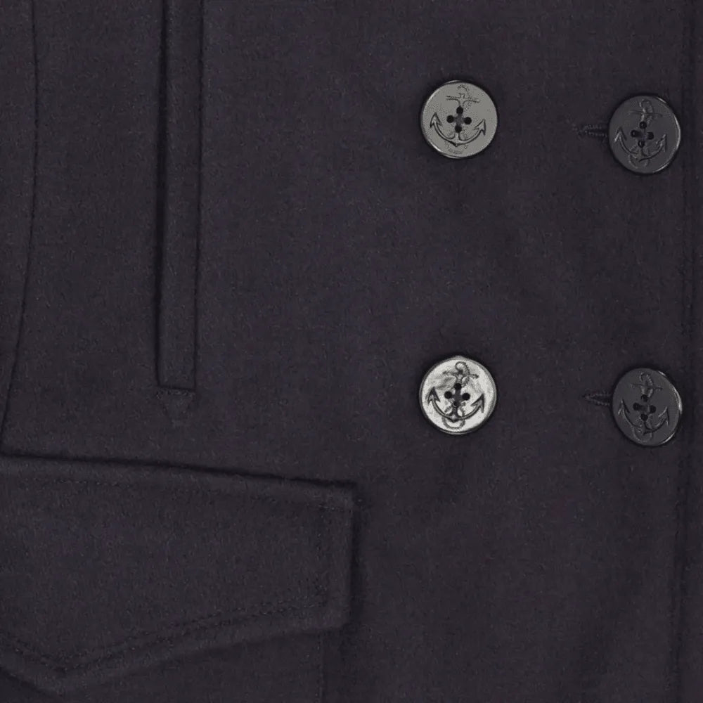 Crafted from soft melton wool with a double-breasted front and anchor buttons, the coat offers exceptional warmth and structure without bulk. Hidden knit cuffs help block wind, while flap pockets and handwarmer pockets add everyday functionality. With its feminine shaping and authentic naval detailing, this peacoat is both a wardrobe staple and a heritage piece worth owning for life.